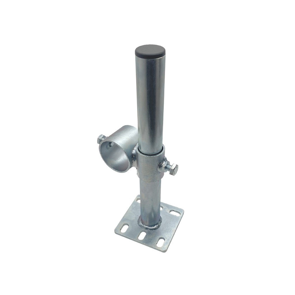 Držák jezdec pro stožár o průměru 50 mm s jedním zajišťovacím šroubem stožáru a jedním zajišťovacím šroubem pro zajištění posouvané části s odsazením 10 až 250 mm od zdi či krovu