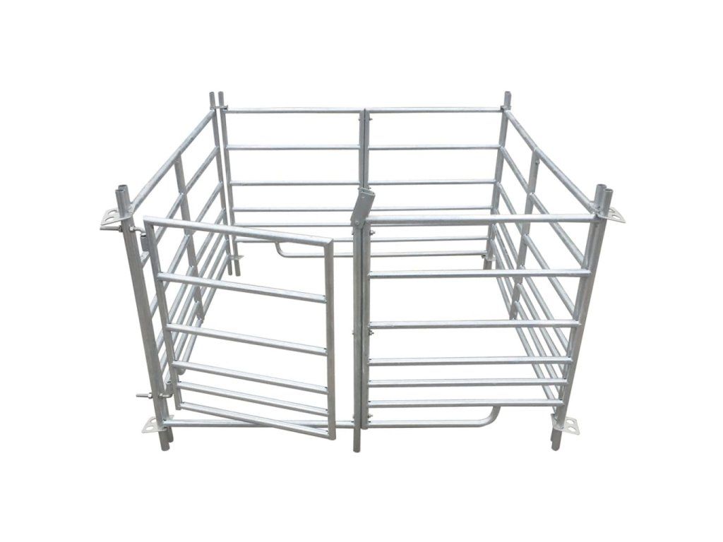Klietka pozostáva zo 4 pevných panelov z pozinkovanej ocele, takže je bezpečná, stabilná a veľmi trvácna. Kompaktné oceľové tyče sú bezpečne vytvarované a zvarené tak, aby sa cez ne ovce nedostali von. Ohrada pre ovce má okrem toho aj praktické dvierka, ktoré sa dajú jednoducho zavrieť a zamknúť.