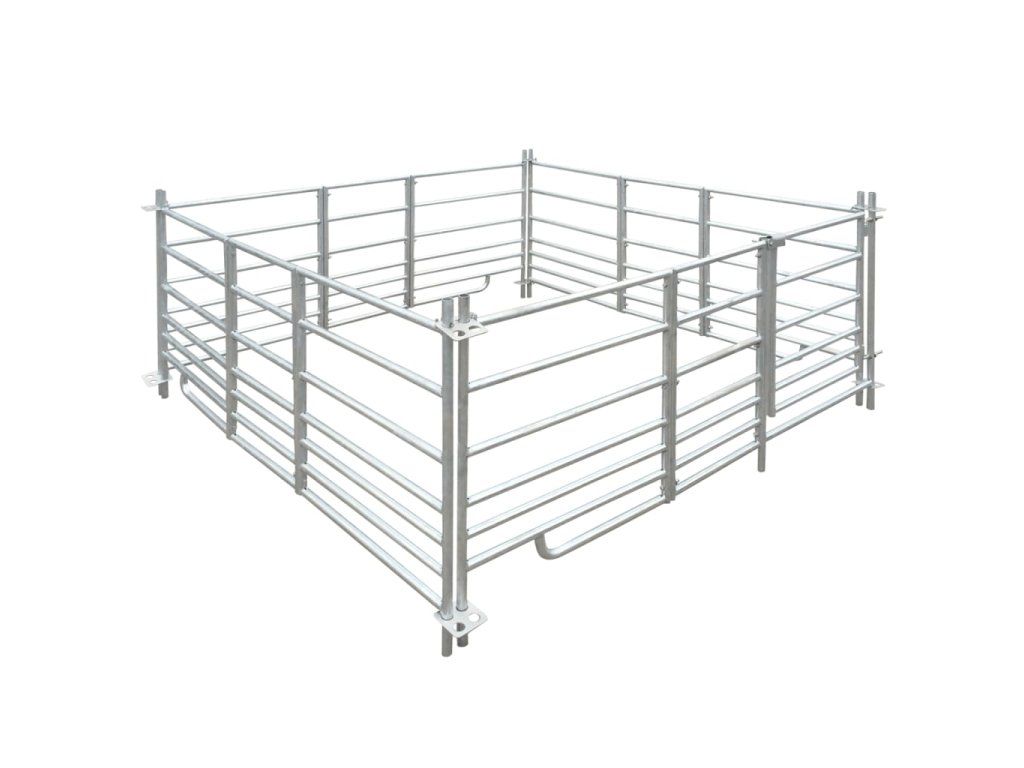 Klietka pozostáva zo 4 pevných panelov z pozinkovanej ocele, takže je bezpečná, stabilná a veľmi trvácna. Kompaktné oceľové tyče sú bezpečne vytvarované a zvarené tak, aby sa cez ne ovce nedostali von. Ohrada pre ovce má okrem toho aj praktické dvierka, ktoré sa dajú jednoducho zavrieť a zamknúť.