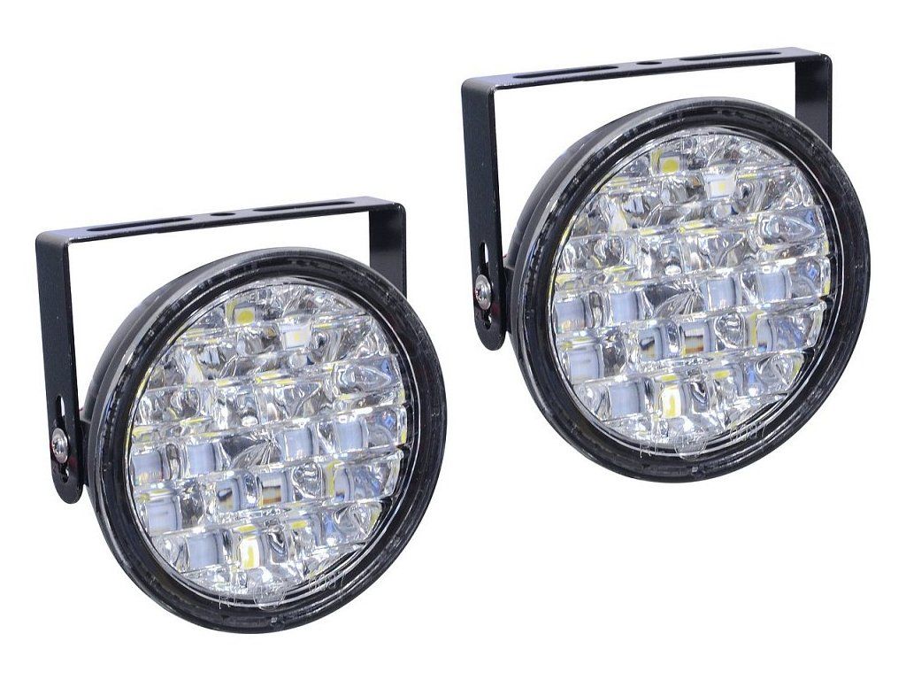 Homologované denné svetlá, napájanie 12 V. Každé svetlo je vybavené 18x LED.