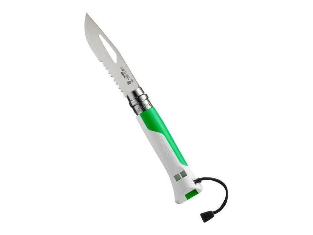 Vreckový zatvárací nôž Opinel VRI N°08 Inox Outdoor Fluo Green vhodný na outdoorové aktivity - kemping, jachting, horolezectvo, kanoistika, potápanie a pod.