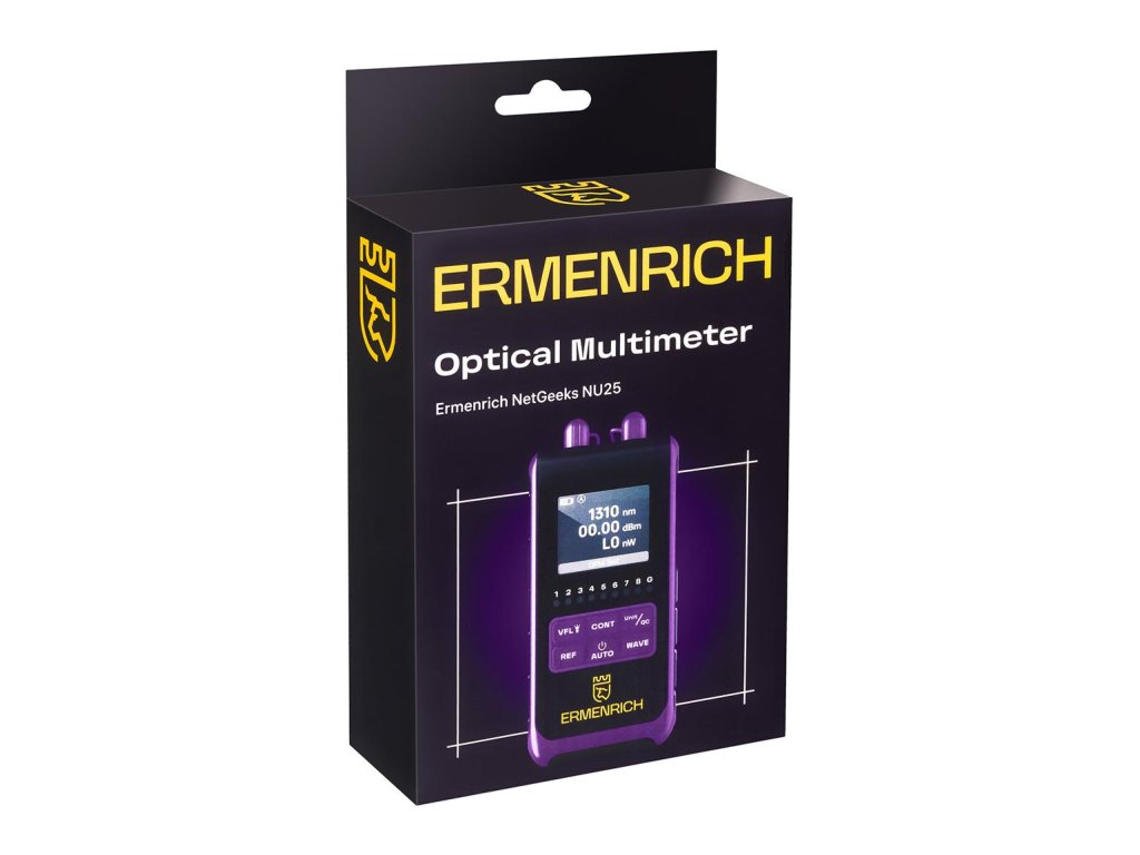 Optický multimetr Ermenrich NetGeeks NU25 je multifunkční zařízení, které lze použít k měření optického výkonu, vyhledávání přerušení kabelů a stanovení dalších charakteristik optické sítě a jejích součástí.