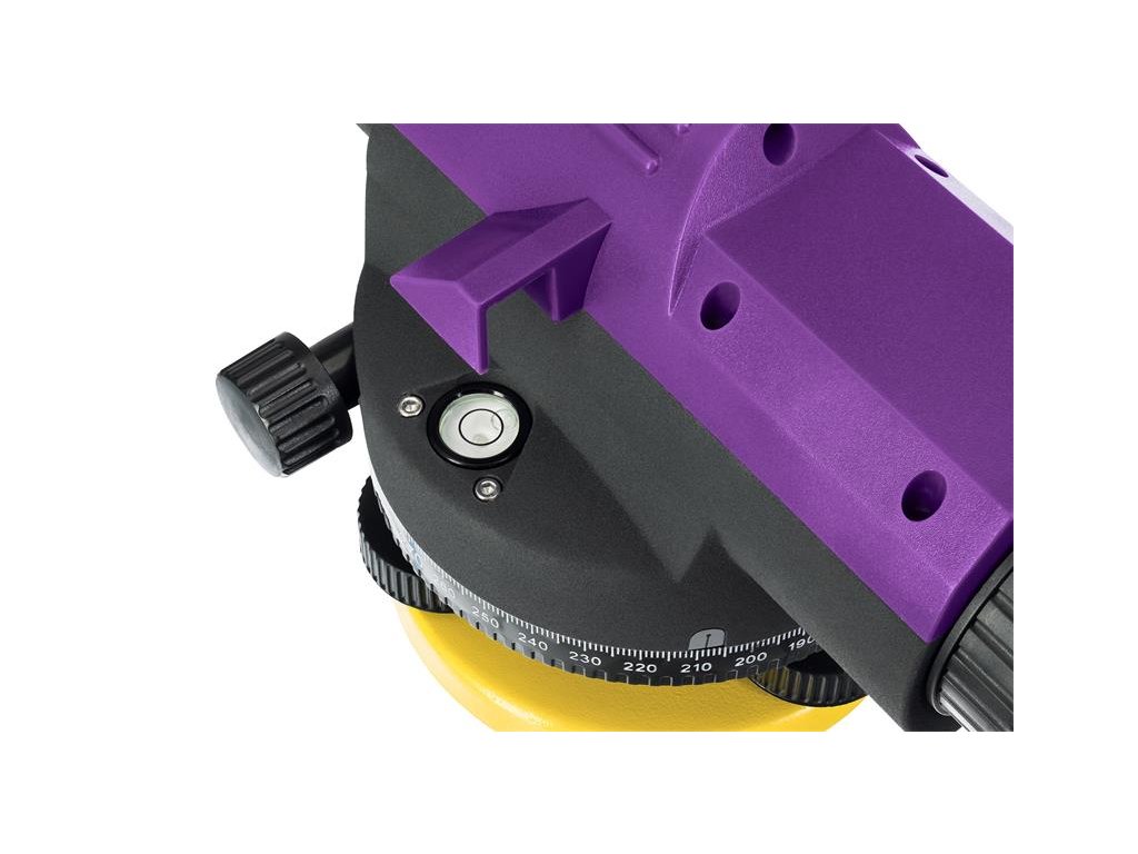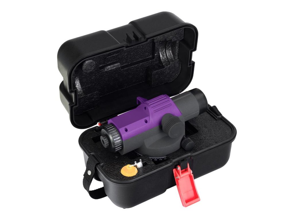 Nivelační optika poskytuje 32x zvětšení. Pracovní vzdálenost je 120 metrů – na tuto vzdálenost je viditelná stupnice ve tvaru písmene E na nivelační tyči. Milimetrová stupnice je viditelná na vzdálenost až 50 metrů. Přístroj není vhodný do každého počasí. Je chráněn proti stříkající vodě a prachovým částicím. Je kompatibilní se standardními 5/8" stativy a je dodáván s nezbytnými nástroji pro seřízení.