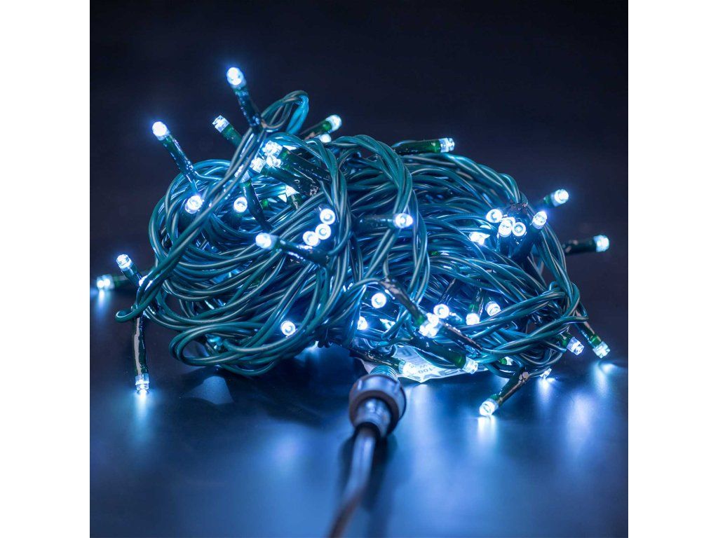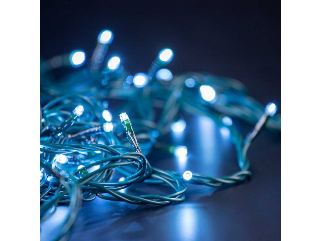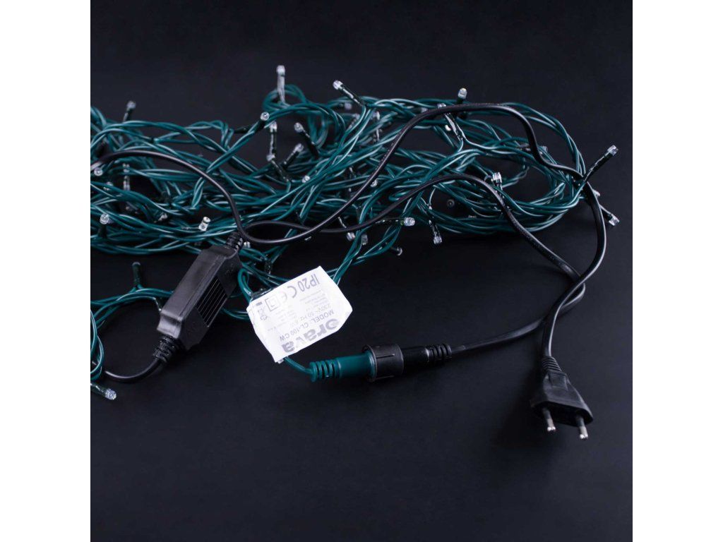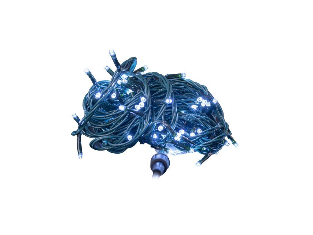 Vianočná svetelná reťaz so 100 LED žiarovkami. Vďaka použitým LED žiarovkám veľmi úsporné. Možnosť pripojenia ďalších 20 reťazí. Dĺžka: 10 m. Farba LED diód: studená biela. Napájanie: 230 V~ 50 Hz, 7 W.Dodatočné parametre