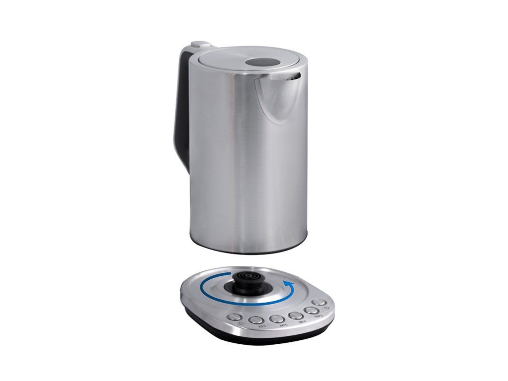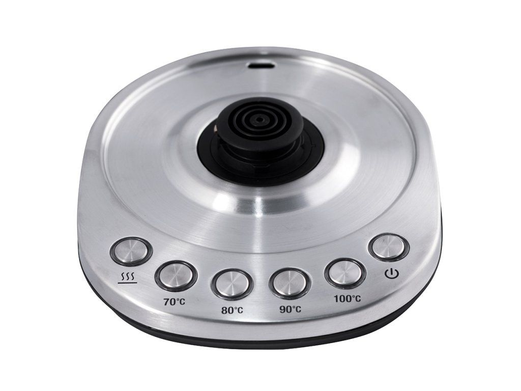 Automatická varná kanvica s možnosťou nastavenia teploty. Elektronická regulácia teploty vodu zohreje na vopred zvolenú teplotu. Nastavenie 4 rôznych teplôt: 70°, 80°, 90° a 100 °C. Funkcia pre udržanie nastavenej teploty po dobu až 60 minút. Zvuková a svetelná signalizácia. Objem vody: max. 1,7 l. Varná nádoba na odnímateľnom 360° otočnom podstavci. Výhrevné teleso prekryté platňou z ušľachtilej ocele. Ochrana pred ohrevom bez vody. Automatické vypnutie. Napájanie: 220 - 240V~ 50/60 Hz, 1 850 - 2 200 W.Dodatočné parametre