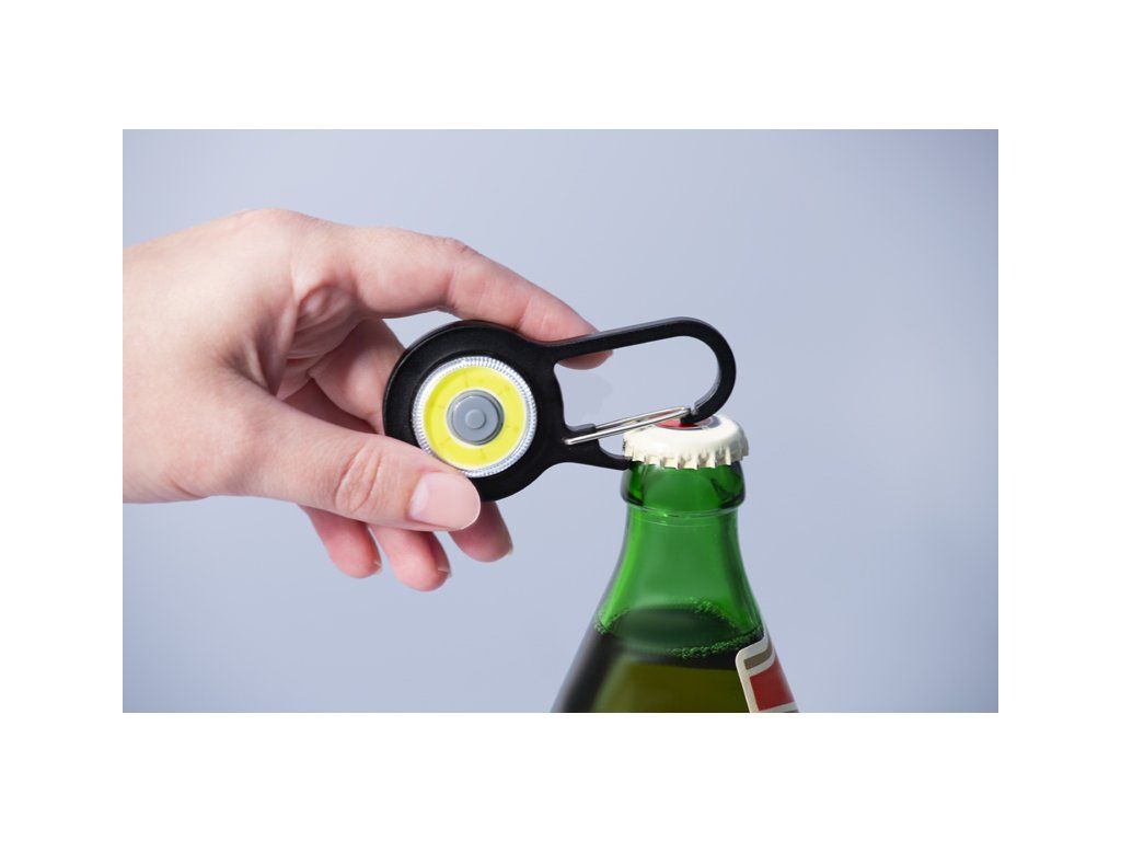 Karabínka s LED svetlom. 6 LED svetiel - extra silné svetlo. 3 režimy svietenia (silno, slabšie, blikanie). Otvárač na fľaše. Darčekové balenie. Napájanie: 6V (2x CR2032).Dodatočné parametre