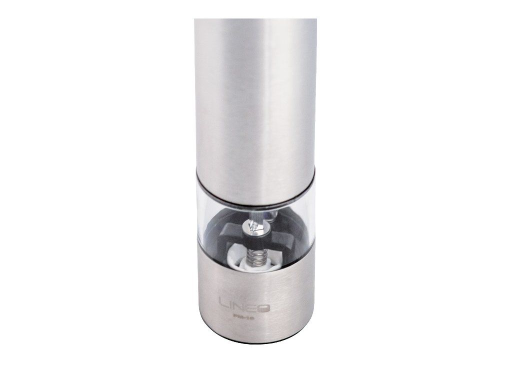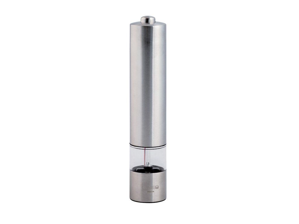 Elektrický mlynček na soľ a korenie. Vyrobený z nerezovej ocele. Jednoduché ovládanie stlačením tlačidla. Keramické mlecie kamene. Možnosť nastavenia hrúbky mletia. Priehľadný zásobník. Osvetlenie priestoru pod mlynčekom. Napájanie: 9V jednosmerné (6 ks 1,5V batéria veľkosť AAA).Dodatočné parametre
