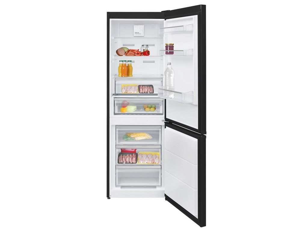 Kombinovaná chladnička s mrazničkou Beznámrazová technológia No Frost Humidity Controlled Crisper - veľká zásuvka na zeleninu s reguláciou vlhkosti Celkový čistý objem: 330 l Čistý objem chladničky: 230 l Čistý objem mrazničky: 101 l Nastaviteľné nožičky, sklenené poličky Možnosť zmeny otvárania dverí Mraziaca kapacita: 8kg/24kg Mraznička: 3 zásuvky z priehľadného plastu Klimat. trieda SN/T (10 °C – 43 °C) Ročná spotreba: 250 kWh Hlučnosť: 39 dB (A) Energetická trieda: E LED osvetlenie Rozmery chladničky (Š x H x V): 595 x 650 x 1860 mm Hmotnosť chladničky: 72 kg Farba: nerezové dvere, boky čierneDodatočné parametre
