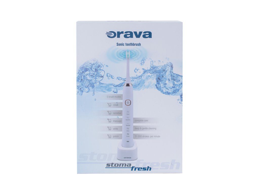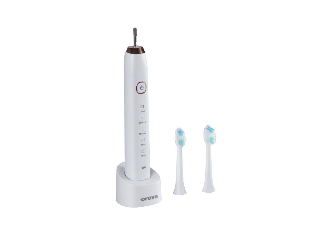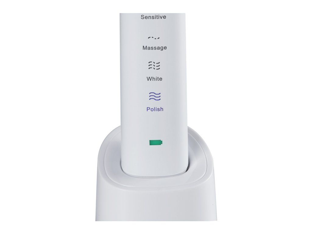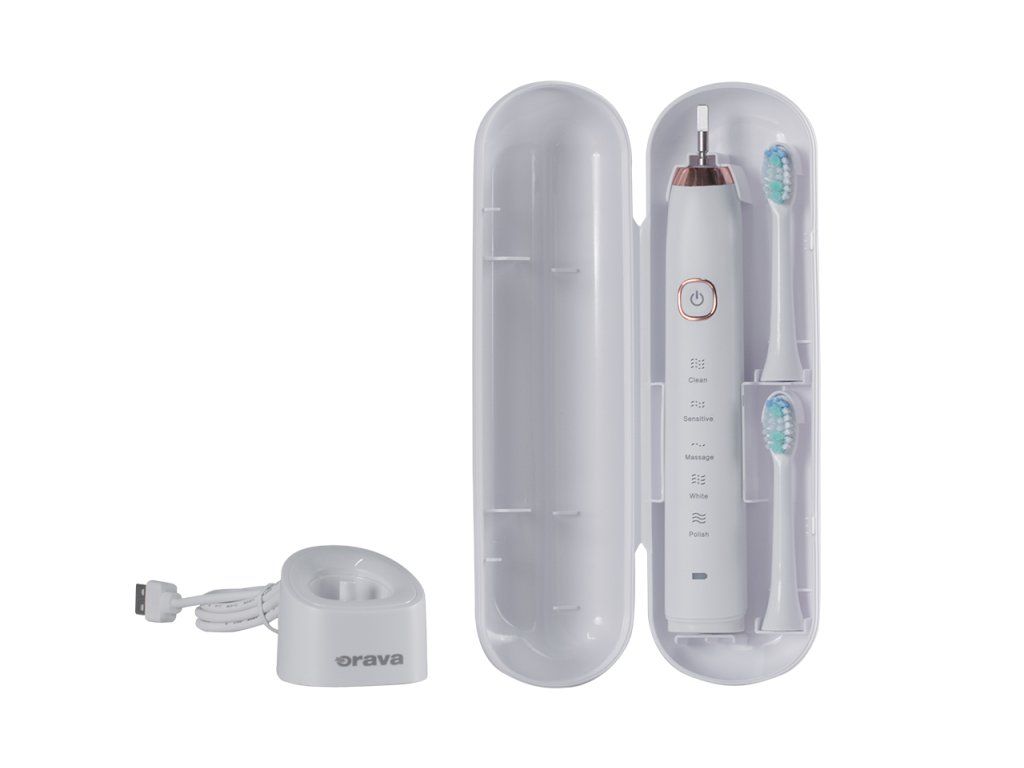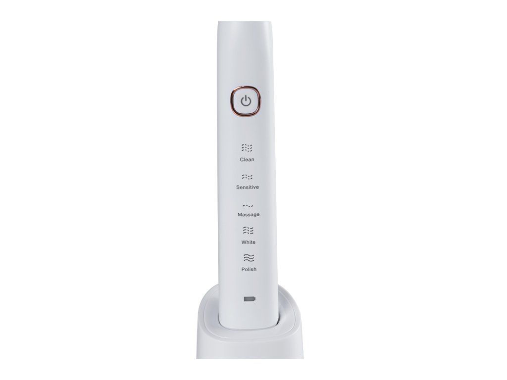 Sonická elektrická zubná kefka. Odstraňuje 7x viac povlaku ako manuálna kefka. Zlepšuje zdravie ďasien. 5 čistiacich režimov (čistenie, jemné čistenie, masírovanie, leštenie, bielenie). 31 000 sterov za minútu. Časovač automatického vypnutia. Funkcia pozastavenia. Indikácia nabíjania. Nabíjací podstavec. 2 hlavice. Cestovné puzdro. Napájanie (podstavec): 5 V/1 A. Napájanie (zubná kefka): 800 mAh, 3,7 V (Li-ion).Dodatočné parametre