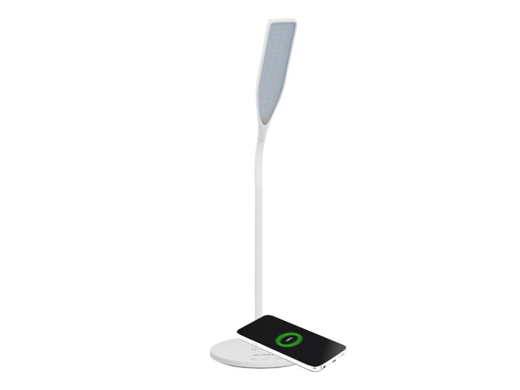 Moderná stolová LED lampa s bezdrôtovou nabíjačkou Quick Charge (Qi). Kompatibilná so všetkými smartfónmi s technológiou Qi. Štýlové dizajnové prevedenie. Jednoduché ovládanie dotykovými tlačidlami. Nastaviteľné rameno a tienidlo LED lampy. Zapínanie a tlmenie svetla dotykovými tlačidlami. Inteligentné časované zhasnutie svietidla. 3 režimy svetla: prirodzené svetlo, studené biele svetlo, teplé žlté svetlo. LED svetlo s dlhou životnosťou až 30 000 hodín. Napájanie: DC 230V~ 50 Hz, 5 V/3 A, 14 W.Dodatočné parametre