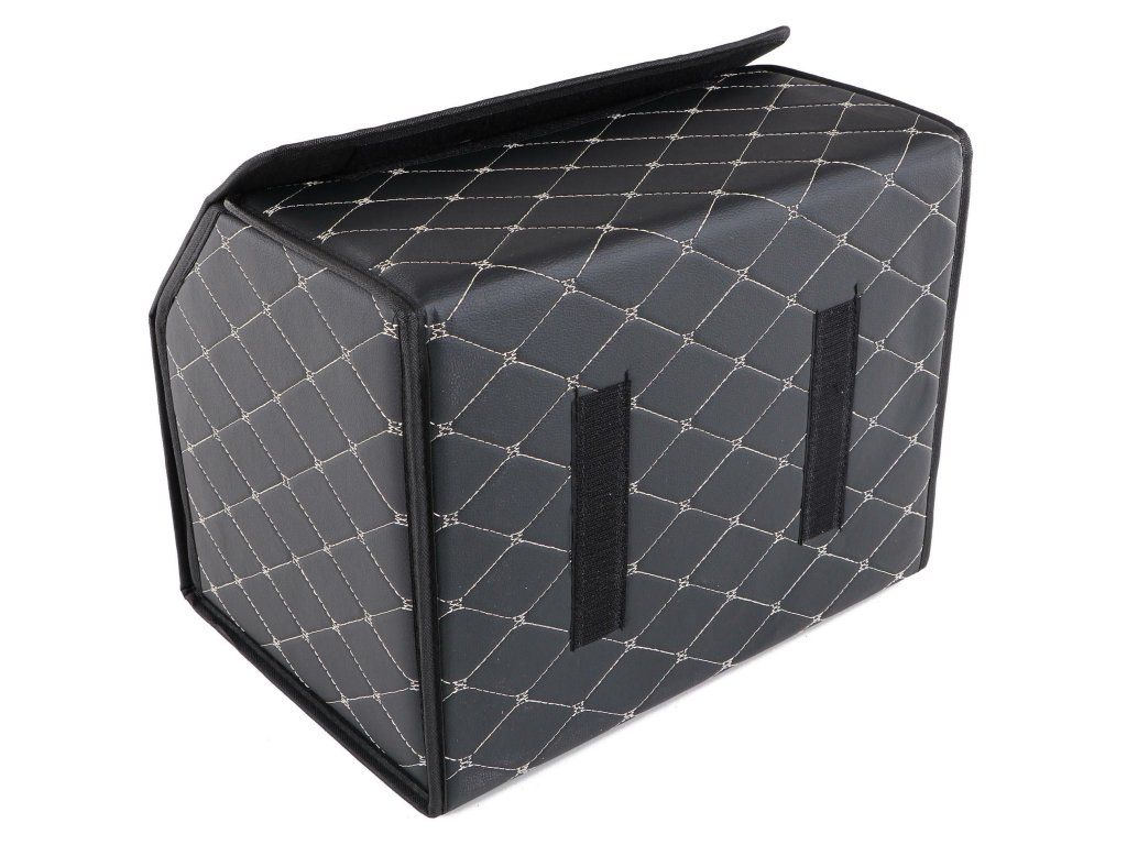 Středně velký organizér CAR COMPACT ELEGANT ve velikosti M nabízí stejnou praktičnost a eleganci jako jeho menší varianta. Díky jedné velké přihrádce a stylovému koženému provedení s luxusním vzorovým šitím bude vaším spolehlivým pomocníkem na cestách. Suchý zip na spodní straně brání klouzání po kufru a víko na suchý zip udrží obsah bezpečně uvnitř. Tento organizér je ideální pro uspořádání nákupu, sportovního vybavení nebo dalších věcí v autě. Stejně jako ostatní modely je skládací a snadno omyvatelný, což zaručuje jeho dlouhou životnost a snadnou údržbu.Hlavní výhody: