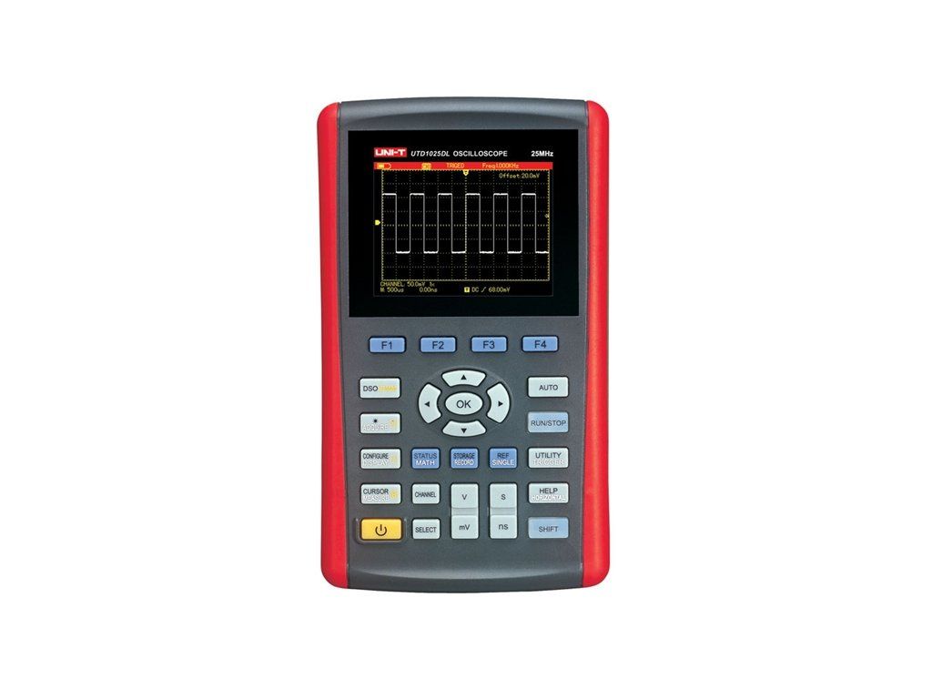 Ručný digitálny osciloskop série UTD1000CL s možnosťou ukladania dát je prenosné zariadenie s 2 kanálmi. Má tiež šírku pásma 25 MHz a vzorkovaciu frekvenciu 250 MS/s. Ponúka jednoduchý, funkčný predný panel, ktorý umožňuje vykonávať všetky základné merania a postupy bez toho, aby ste sa museli s prístrojom podrobne oboznamovať. Tlačidlo AUTO umožňuje rýchle nastavenie.
