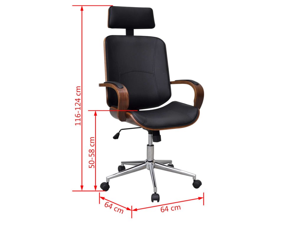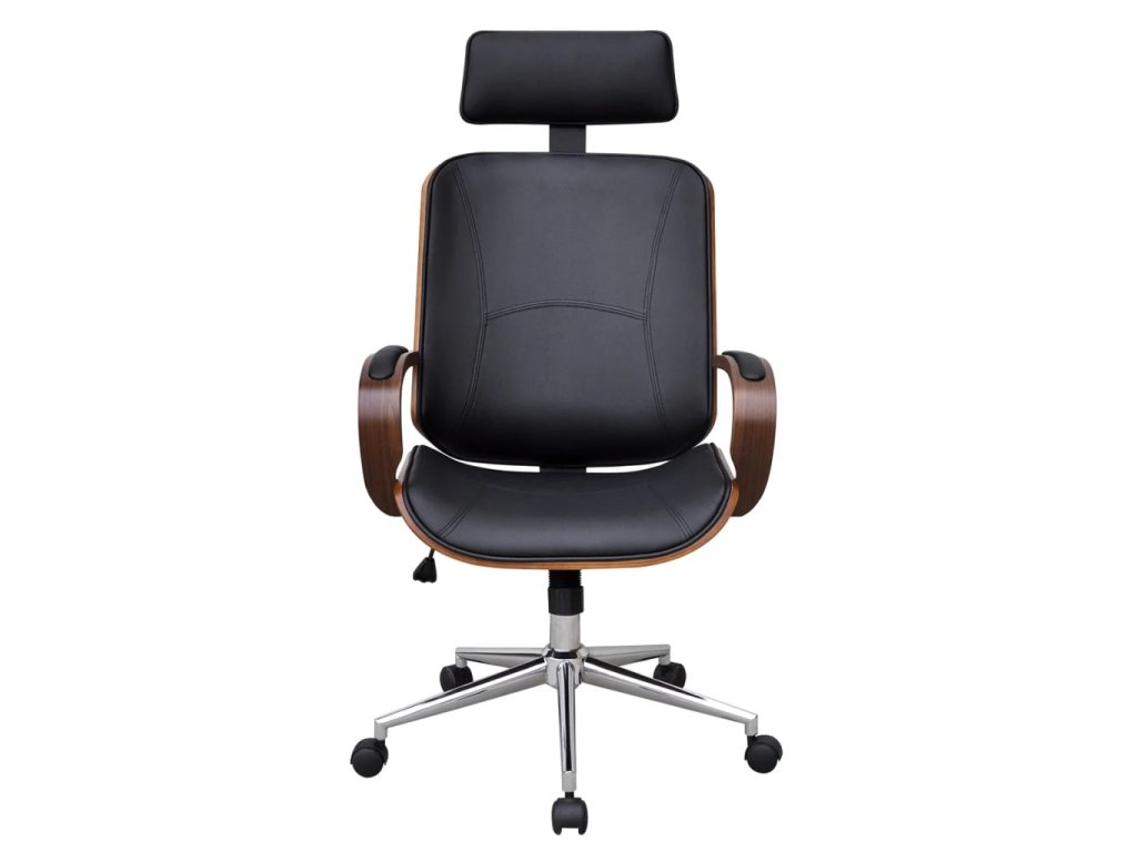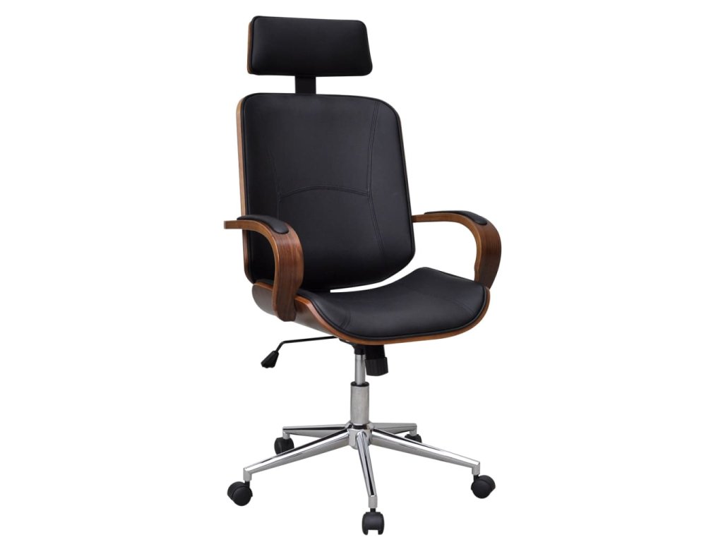 Otočná kancelárska stolička s opierkou hlavy, ohývané drevo,umelá koža
