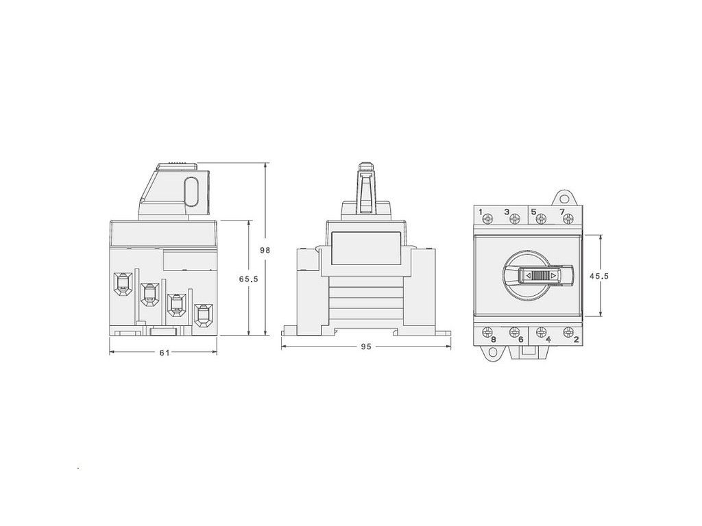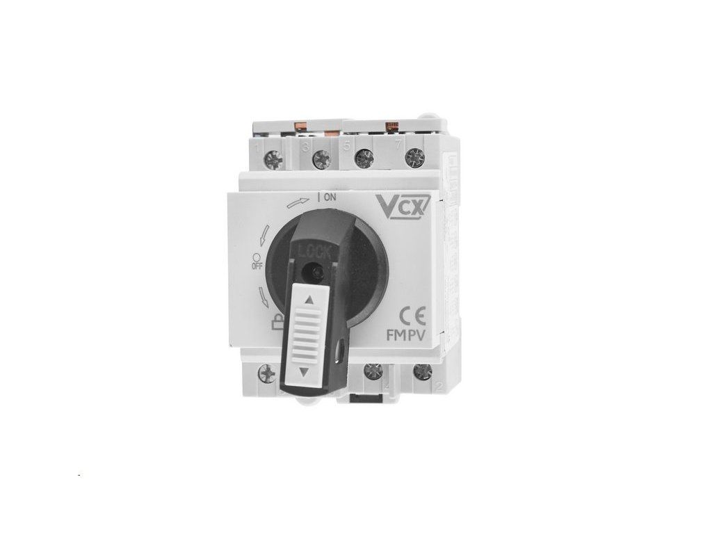 Otočný spínač VCX 4P 32A 1200V DC, montáž na DIN lištu