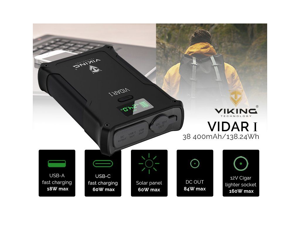 Outdoorová powerbanka Viking VIDAR I • Kapacita: 38400mAh/138Wh • Maximální výkon: 160W • Široká škála vstupů a výstupů (USB-A, USB-C, Cigaretová zásuvka, DC-jack) • Možnost solárního napájení • Funkce Pass-Through • Odolnost IP65 OUTDOOROVÁ POWERBANKA VIKING VIDAR I Outdoorová powerbanka Viking VIDAR I je kompaktní a odolná powerbanka , ideální pro kratší výlety, každodenní použití i práci v terénu. Díky LED displeji a několika výstupním portům spolehlivě nabije váš telefon, tablet nebo menší elektroniku – a to i mimo dosah elektrické sítě. S kapacitou 38400 mAh (138Wh) a maximálním výkonem až 160 W spolehlivě napájí širokou škálu zařízení – od mobilních telefonů přes notebooky až po 12V spotřebiče. Nabízí výstupy USB-A, USB-C, DC-JACK pro notebooky a cigaretovou zásuvku. Klíčové vlastnosti: • Kapacita baterie 38400 mAh (138Wh) • Rychlé nabíjení přes USB-C nebo DC-JACK (nabíjecí výkon až 84 W) • Fukce Pass-Through umožňuje současné nabíjení i používání powerbanky • LED displej - stav baterie, indikace nabíjení, indikace aktivního vstupu/výstupu • Powerbanku lze nabít solárním panelem o výkonu až 60 W • Možnosti nastavení výstupního napětí • Ideální pro napájení mobilů, tabletů notebooků a další běžné elektroniky • Hmotnost 857 g a praktické rozměry pro snadný transport Energie po ruce Powerbanka Viking VIDAR I je spolehlivý parťák pro každého, kdo potřebuje mít základní zásobu energie vždy po ruce – ať už na výletě či při práci. S kapacitou 38400 mAh, nízkou hmotností, kompaktními rozměry a praktickými výstupy snadno nabijete mobilní telefon, tablet, čelovku nebo jiné menší zařízení – kdekoliv a kdykoliv. O aktuálním stavu máte vždy přehled díky přehlednému LED displeji, který zobrazuje stav baterie a aktivní vstupy a výstupy. Ať už jste kdekoliv, s powerbankou Viking VIDAR I budete mít energii vždy pod kontrolou. Powerbanka podporuje funkci pass-through, díky které můžete zároveň nabíjet samotnou powerbanku a zároveň napájet připojená zařízení – ideální při použití se solárním panelem nebo během delšího pobytu mimo síť. Výkon a konektivita bez kompromisů Pro pohodlné a univerzální použití je powerbanka vybavena širokou škálou výstupních konektorů, díky kterým snadno nabijete různé typy zařízení – od mobilních telefonů až po běžnou elektroniku. Výstupy: • Cigaretová zásuvka: 12-16V/10A (160W max) • USB-A: 5V/3A, 9V/2A, 12V/1.5A (18W max) • USB-C: 5V/3A, 9V/3A, 12V/3A, 15V/3A, 20V/3A (60W max) • DC-JACK (5.5/2.1mm): 12V/5A, 16.5V/4A, 20V/3.5A, 24V/3.5A (84W max) Rychlé a spolehlivé dobíjení doma i venku Dobíjení powerbanky je rychlé a flexibilní díky několika dostupným vstupům, které umožňují nabíjet zařízení jak ze sítě, tak například ze solárního panelu – ideální pro použití doma i v terénu. Vstupy: • DC Input (5.5/2.1mm): 12-24V/3A(Max) • Solární nabíjení: 60W (Max) • USB-C: 5V/3A, 9V/3A, 12V/3A, 15V/3A, 20V/3A Odolná a výkonná powerbanka Tato powerbanka je navržena s ohledem na extrémní podmínky. Díky certifikaci IP65 je odolná proti prachu a stříkající vodě, takže se nemusíte obávat, že by ji poškodila prachová bouře nebo lehký liják. Obsah balení: 1 ks Powerbanka Viking VIDAR I 1 ks Ochranné pouzdro 1 ks Adaptér pro nabíjení ze sítě (koncovka DC-JACK 5.5/2.1mm, evropská zástrčka) 1 ks Propojovací kabel s JACK koncovkami (5.5/2.1mm) 1 ks Propojovací kabel USB-A – USB-C Sada 8 různých koncovek/přechodek pro nabíjení notebooků Technické specifikace: Model: Viking VIDAR I Baterie: Kapacita: 38400mAh/138Wh Napětí baterie: 3.6V Typ: Li-pol Vstupy: DC Input (5.5/2.1mm): 12-24V/3A(Max) Solární nabíjení: 60W (Max) USB-C: 5V/3A, 9V/3A, 12V/3A, 15V/3A, 20V/3A Výstupy: Cigaretová zásuvka: 12-16V/10A (160W max) USB-A: 5V/3A, 9V/2A, 12V/1.5A (18W max) USB-C: 5V/3A, 9V/3A, 12V/3A, 15V/3A, 20V/3A (60W max) DC-JACK (5.5/2.1mm): 12V/5A, 16.5V/4A, 20V/3.5A, 24V/3.5A (84W max) Ostatní specifikace: Rozměry: 185 x 121 x 40 mm Hmotnost: 857 g Materiál: ABS plast + guma IP ochrana: IP65 (platí pouze v případě, že jsou všechny vstupní i výstupní konektory zakryté např. silikonovým ochranným krytem) Certifikace: CE, RoHS, MSDS, CE, UN38.3 COMPLIANT Příslušenství: AC nabíjecí adaptér, propojovací kabel JACK - JACK, propojovací kabel USB-A-USB-C, sada 8 redukcí JACK, ochranné pouzdro Funkce: Pass-Through, LED display Provozní teplota: 0°C ~ 60°CDodatočné parametre