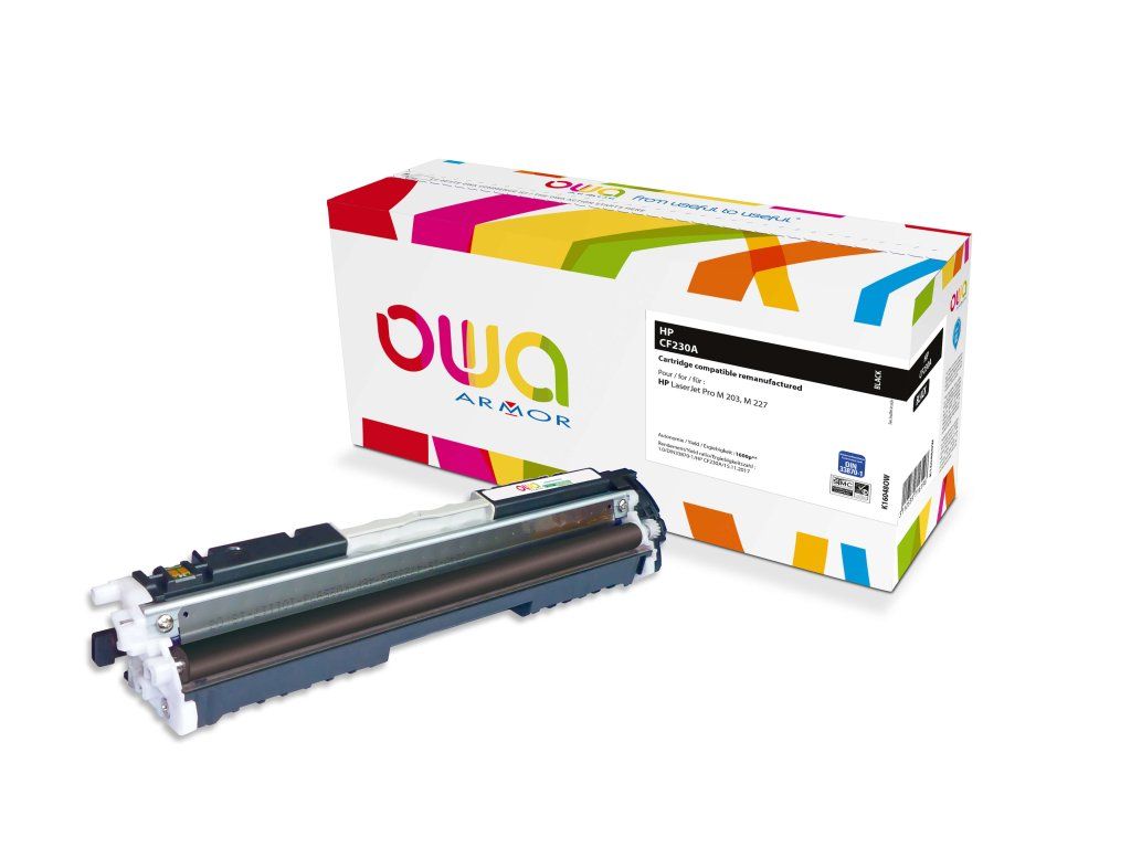 toner je kompatibilní s těmito tiskárnami: HP LaserJet Pro M 203 series, HP LaserJet Pro M 220 series, HP LaserJet Pro MFP 227 series, V případě, že máte nejasnosti ohledně kompatibility, obraťte se prosím na bezplatnou infolinku 800 157 928. Další informace na www.armor.cz Tonery OWA ARMOR – řešení pro zodpovědné Tonery OWA ARMOR – Unikátní kombinace ekonomického a ekologického řešení • Velmi kvalitní řada tonerových kazet OWA ARMOR do téměř všech tiskáren na trhu. • Na všechny tonery OWA ARMOR je poskytován bezkonkurenční servis v podobě doživotní záruky na kazety, převzetí záruky za nové tiskárny a zpětný odběr kazet. • ARMOR ručí za kvalitu tisku. • Žádný z tonerů OWA ARMOR neporušuje patentové právo. • Tonery OWA ARMOR vám umožňují splnit požadavky společenské odpovědnosti firem (CSR) v oblasti ochrany životního prostředí. • Při zapojení se do programu OWA získáváte automaticky tzv. Materiálový report, který můžete zahrnout do vašeho CSR reportu. Podívejte se, jak program OWA funguje https://www.youtube.com/watch?v=oLTvCXQd2jU S tonery OWA Armor zároveň získáváte: • ZDARMA zapojení do programu odběru vypsaných tonerů včetně získání tzv. materiálového reportu – šetříte životní prostředí. • ZDARMA technickou podporu na zákaznické lince 800 157 928. • ZDARMA 100% servis v podobě sítě specializovaných firem s operativním výjezdem technika na místo do 48 hodin. • ZDARMA širokou marketingovou podporu pro partnery • Jistotu, že žádné tonery OWA ARMOR neporušují patenty a jsou zdravotně nezávadné. • Francouzskou kvalitu prověřenou mezinárodními certifikáty. • Doživotní záruku na tonery OWA ARMOR. • Rozšířená záruka na zařízení.Dodatočné parametre