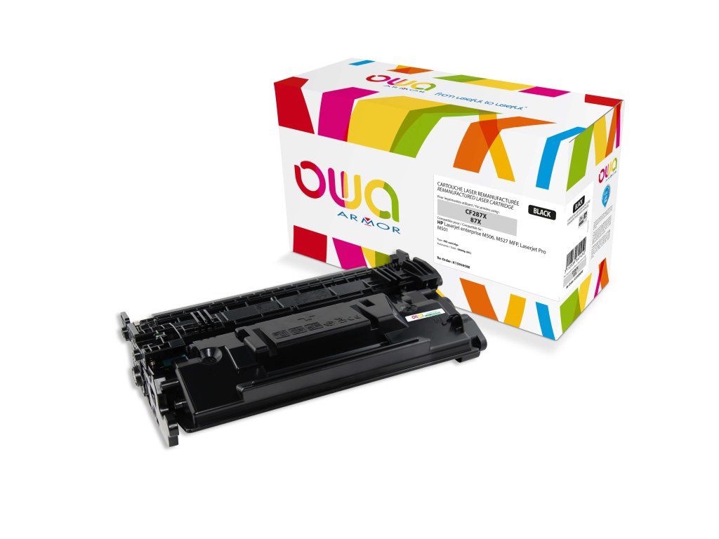 toner je kompatibilní s těmito tiskárnami: HP LaserJet Managed MFP M527 dnm, HP LaserJet Managed Flow MFP M527 cm, HP LaserJet Managed M506 dnm, HP LaserJet Managed M506 xm, HP LaserJet Pro M501 Series, HP LaserJet Enterprise Flow MFP M527 c, HP LaserJet Enterprise M506 Series, HP LaserJet Enterprise MFP M520 Series, V případě, že máte nejasnosti ohledně kompatibility, obraťte se prosím na bezplatnou infolinku 800 157 928. Další informace na www.armor.cz Tonery OWA ARMOR – řešení pro zodpovědné Tonery OWA ARMOR – Unikátní kombinace ekonomického a ekologického řešení • Velmi kvalitní řada tonerových kazet OWA ARMOR do téměř všech tiskáren na trhu. • Na všechny tonery OWA ARMOR je poskytován bezkonkurenční servis v podobě doživotní záruky na kazety, převzetí záruky za nové tiskárny a zpětný odběr kazet. • ARMOR ručí za kvalitu tisku. • Žádný z tonerů OWA ARMOR neporušuje patentové právo. • Tonery OWA ARMOR vám umožňují splnit požadavky společenské odpovědnosti firem (CSR) v oblasti ochrany životního prostředí. • Při zapojení se do programu OWA získáváte automaticky tzv. Materiálový report, který můžete zahrnout do vašeho CSR reportu. Podívejte se, jak program OWA funguje https://www.youtube.com/watch?v=oLTvCXQd2jU S tonery OWA Armor zároveň získáváte: • ZDARMA zapojení do programu odběru vypsaných tonerů včetně získání tzv. materiálového reportu – šetříte životní prostředí. • ZDARMA technickou podporu na zákaznické lince 800 157 928. • ZDARMA 100% servis v podobě sítě specializovaných firem s operativním výjezdem technika na místo do 48 hodin. • ZDARMA širokou marketingovou podporu pro partnery • Jistotu, že žádné tonery OWA ARMOR neporušují patenty a jsou zdravotně nezávadné. • Francouzskou kvalitu prověřenou mezinárodními certifikáty. • Doživotní záruku na tonery OWA ARMOR. • Rozšířená záruka na zařízení.Dodatočné parametre