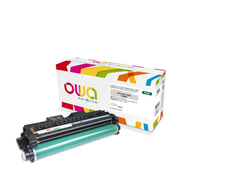 OWA Armor válec kompatibilní s HP LJ CP1025 drum, 14.000 str., kompatibilní s CE314A V případě, že máte nejasnosti ohledně kompatibility, obraťte se prosím na bezplatnou infolinku 800 157 928. Další informace na www.armor.cz Tonery OWA ARMOR – řešení pro zodpovědné Tonery OWA ARMOR – Unikátní kombinace ekonomického a ekologického řešení • Velmi kvalitní řada tonerových kazet OWA ARMOR do téměř všech tiskáren na trhu. • Na všechny tonery OWA ARMOR je poskytován bezkonkurenční servis v podobě doživotní záruky na kazety, převzetí záruky za nové tiskárny a zpětný odběr kazet. • ARMOR ručí za kvalitu tisku. • Žádný z tonerů OWA ARMOR neporušuje patentové právo. • Tonery OWA ARMOR vám umožňují splnit požadavky společenské odpovědnosti firem (CSR) v oblasti ochrany životního prostředí. • Při zapojení se do programu OWA získáváte automaticky tzv. Materiálový report, který můžete zahrnout do vašeho CSR reportu. Podívejte se, jak program OWA funguje https://www.youtube.com/watch?v=oLTvCXQd2jU S tonery OWA Armor zároveň získáváte: • ZDARMA zapojení do programu odběru vypsaných tonerů včetně získání tzv. materiálového reportu – šetříte životní prostředí. • ZDARMA technickou podporu na zákaznické lince 800 157 928. • ZDARMA 100% servis v podobě sítě specializovaných firem s operativním výjezdem technika na místo do 48 hodin. • ZDARMA širokou marketingovou podporu pro partnery • Jistotu, že žádné tonery OWA ARMOR neporušují patenty a jsou zdravotně nezávadné. • Francouzskou kvalitu prověřenou mezinárodními certifikáty. • Doživotní záruku na tonery OWA ARMOR. • Záruku na nové tiskárny.Dodatočné parametre