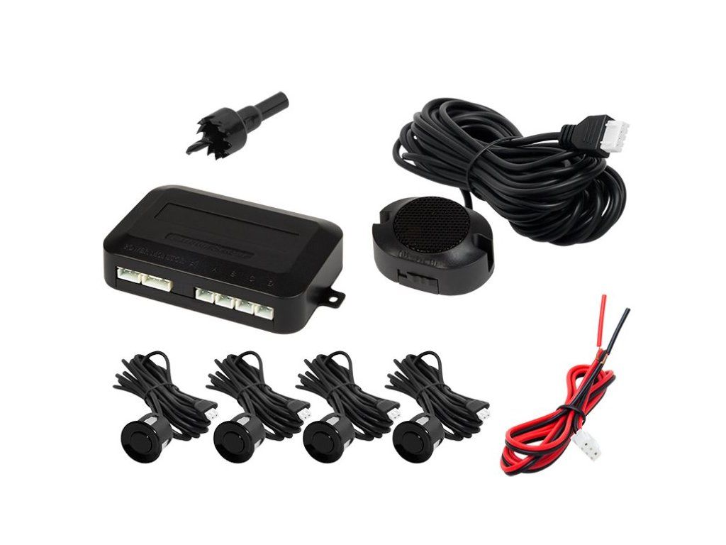 Univerzálny ultrazvukové 4-senzorové parkovacie senzory s vstavaným bzučiakom, ktorý vydáva zvukový signál, ktorý zvyšuje jeho zvukovú frekvenciu, ako sa vzdialenosť od prekážky zmenšuje.