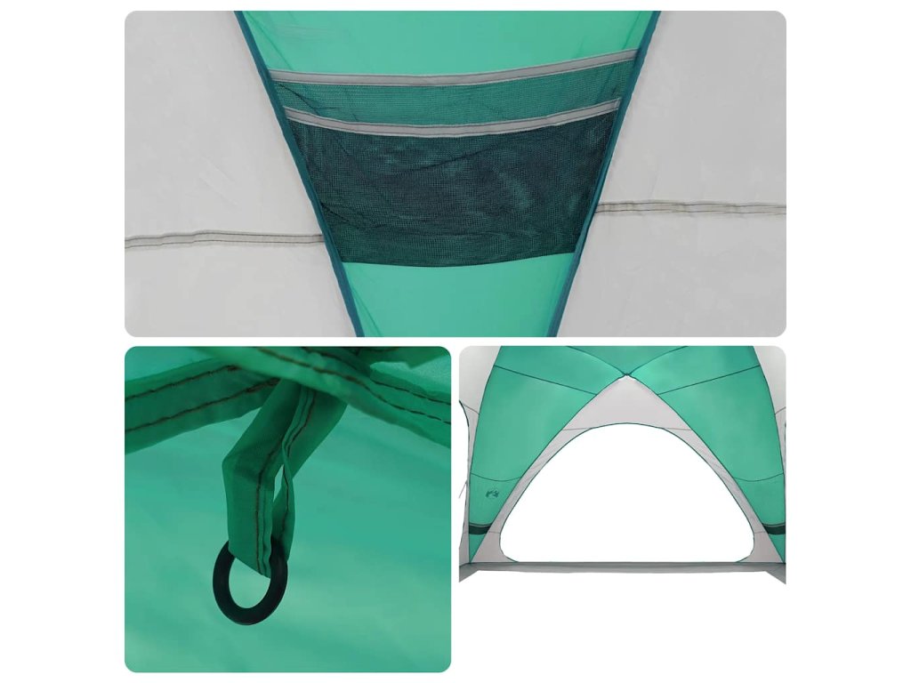 - Jednoduché nastavenie a demontáž: Vďaka veľmi flexibilným a ľahkým tyčiam zo sklenených vlákien a pohodlnému systému spojenia kolíkom a krúžkom je postavenie a zloženie stanu hračkou.
