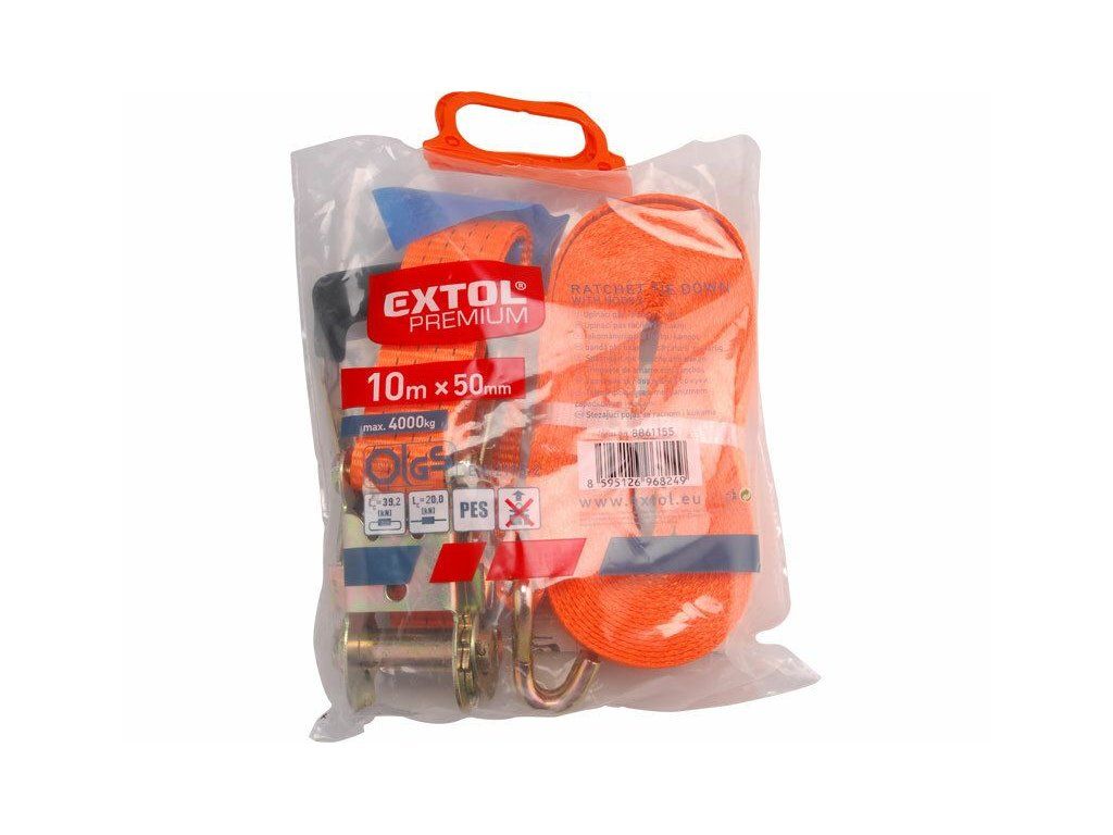 Pás upínací ráčnový s háky, 6m x 50mm, max. 4000kg, PES EXTOL-PREMIUM
