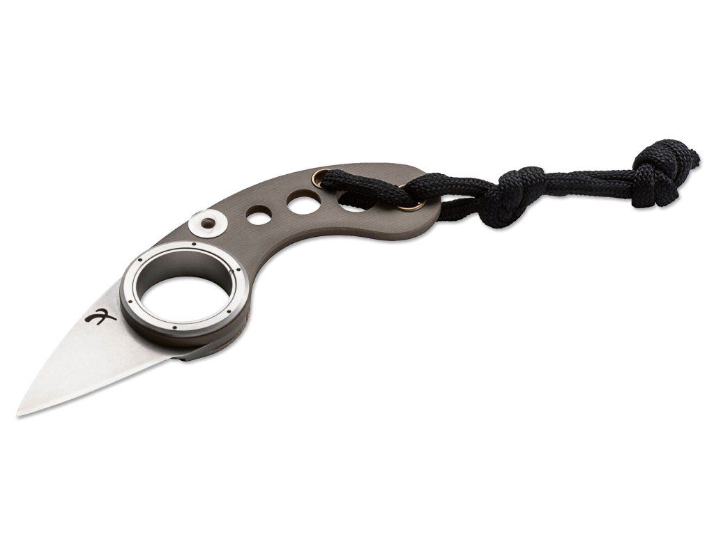 S čepeľou s hladkou hranou z nerezovej ocele 440C, bez uzamykacieho systému. Otáča sa bez pružiny alebo aretácie, okolo veľmi prepracovanej osi čepele, do ktorej sa súčasne zmestí ukazovák.