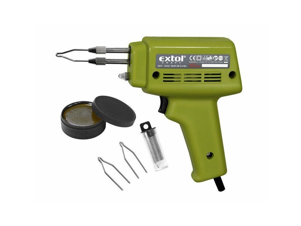 Pistole pájecí transformátorová s příslušenstvím, 100W, EXTOL CRAFT