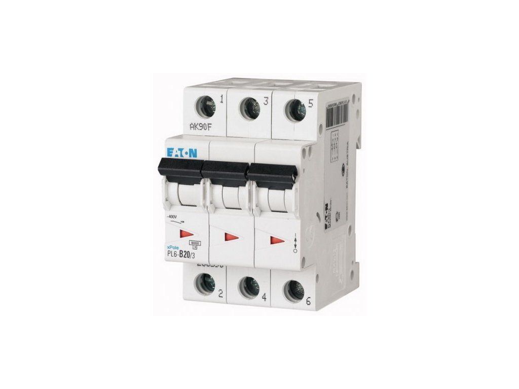 Eaton 286602 Istič PL6, char C, 3-pólový, Icn \u003d 6kA, In \u003d 20A PL6-C20/3Dodatočné parametre