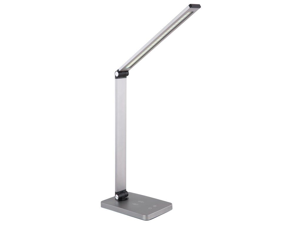 Platinet PDL888S stolná LED lampa 10W stmievateľná, bezdrôtové nabíjanie, USB port, strieborná