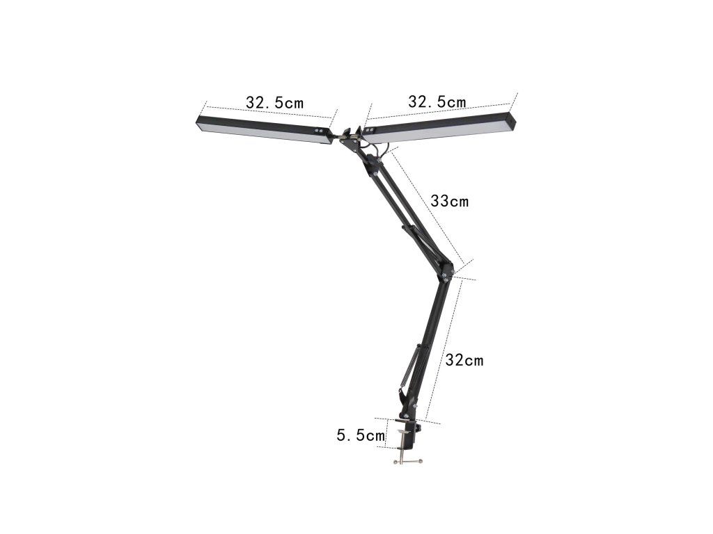 Model PDLD20 je stolní LED lampa navržená pro náročné uživatele, kteří hledají maximální výkon, flexibilitu a styl. Ideální volba pro pracovní stoly v kanceláři, designérská studia nebo domácí pracovny. Lampa je vybavena dvěma samostatnými rameny, z nichž každé je zakončeno 35 cm dlouhým světelným panelem. Ramena jsou plně nastavitelná díky sedmi kloubovým spojům, což umožňuje dokonalé nasměrování světla podle aktuálních potřeb – ať už pracujete, tvoříte, nebo čtete. Každý světelný panel obsahuje 80 LED diod a dosahuje výkonu 10 W při světelném toku 500 lumenů. Celkový světelný výkon lampy je tedy 1000 lm, což zajišťuje rovnoměrné a intenzivní osvětlení i velkých pracovních ploch. LED technologie s CRI vyšším než 80 zaručuje přirozené podání barev a šetrnost k očím, což oceníte zejména při dlouhodobé práci. Lze nastavit na 10 úrovní jasu a přepínat mezi třemi barevnými režimy světla – teplé, neutrální a studené bílé. To umožňuje přizpůsobit osvětlení aktuální činnosti nebo denní době. Délka napájecího kabelu je 130 cm, což poskytuje dostatečný prostor pro umístění lampy podle potřeby. Díky kombinované možnosti montáže si můžete zvolit buď pevné uchycení pomocí klipu na hranu stolu (do tloušťky 6 cm), nebo stabilní umístění na základnu. Obě varianty jsou součástí balení. Celkový vzhled lampy podtrhuje moderní černé provedení z kombinace kovu a plastu, provozní teplota je v rozmezí 0–40 °C a vyzařovací úhel činí 120°, což zajišťuje široký záběr světla bez ostrých stínů. Adaptér i napájecí kabel je součástí balení. Napětí napájení je 12V/2A. PARAMETRY: • LED: ano • Stmívatelné: ano • Bezdrátové nabíjení: ne • Dotykové: ne • Na baterie: ne • S USB: ne • S nastavitelnou teplotou barvy světla: ano • Barevná teplota: 2800-6000 K • RGB: ne • Patice: Integrovaný LED zdroj • Vypínač: Na kabelu • Index podání barev (CRI): 80 Ra • Počet cyklů zapnutí / vypnutí: 15 000 ON/OFF • Délka kabelu: 130 cm • Materiál: plast a kov • Barva: černá • Světelný tok: 500 lm • Výkon: 2x10 W • Napětí: 12 V • Vstupní proud: 2 A • Ekvivalent klasické žárovky: 2x35 W • Adaptér součástí balení: ano • Typ konektoru na lampě: jack • Typ konektoru na adaptér: jack • Rozměry (Š x V x H): 50mm x 650mm x 640mm • Hmotnost: 2.2 kgDodatočné parametre