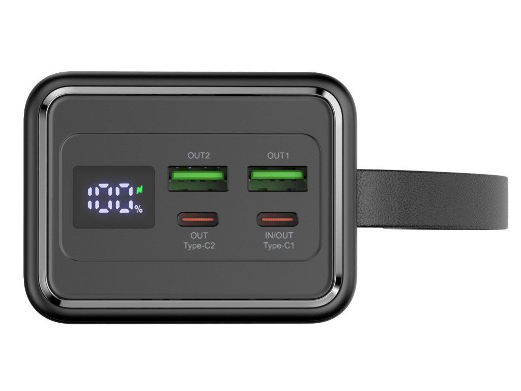 PMPB4065 je vysokokapacitní nabíjecí powerbanka, která nabízí rychlé a efektivní napájení elektronických zařízení. S působivou kapacitou 40 000 mAh při 3,7 V (ekvivalent 29 600 mAh při 5 V) můžete své smartphony, tablety a další mobilní zařízení dobít několikanásobně, než budete muset powerbanku znovu připravit k použití. Je vybavena několika výstupními porty, včetně dvou standardních portů USB-A a dvou portů Type-C, z nichž jeden slouží k nabíjení samotné powerbanky. Porty USB nabízejí výstup 5V/4,5A, 5V/3A, 9V/2A a 12V/1,5A, zatímco port typu C nabízí výstup 5V/3A, 9V/3A, 12V/3A, 15V/3A, 20V/3,25A (PD65W), který umožňuje rychlé nabíjení různých zařízení. Powerbanka je také kompatibilní s technologií rychlého nabíjení 65W PD (Power Delivery) a SCP (SuperCharge), což znamená, že může poskytnout rychlé nabíjení zařízením kompatibilním s těmito technologiemi. Vestavěný digitální indikátor vám umožní snadno sledovat zbývající nabití powerbanky a přiložený 100 cm kabel Type-C nabízí pohodlné řešení nabíjení. Powerbanka je vybavena i výkonnou svítilnou. Díky svým kompaktním rozměrům a rozumné hmotnosti se PMPB4065 snadno přenáší v tašce a batohu, což vám umožní zůstat na cestách blízko zdroje energie. TECHNICKÉ SPECIFIKACE: • Kapacita: 40000mAh při 3,7V / 29600mAh při 5V • Výstup USB-A: 5V/4,5A, 5V/3A, 9V/2A a 12V/1,5A • Výstup typu C: 5V/3A, 9V/3A, 12V/3A, 15V/3A, 20V/3,25A (PD65W) • Celkový výkon: 65W PD • Rozměry: 153 x 71,3 x 54 mm • Hmotnost: 830 g • Konektor typu C • 100 cm kabel typu C je součástí dodávky • Digitální indikátor • 2 porty USB-A • 2 porty typu C PARAMETRY: • Kapacita: 40000 mAh • Min. výstupní proud: 1,5 A • Max. výstupní proud: 4,5 A • Min. výstupní napětí: 5 V • Max. výstupní napětí: 20 V • Max. výstupní výkon: 65 W • Počet výstupů: 4 • USB-C konektor: 2 • USB-A konektor: 2 • Pro telefony: ano • Pro tablety: ano • Pro notebooky: ano • Bezdrátové nabíjení: ne • Fast Charge: ano • Solární: ne • Displej: ano • Svítilna: ano • Zvýšená odolnost ne • Typ článků: Li-Pol • Adaptér součástí balení: ne • Délka kabelu: 1 m • Napájecí kabel součástí balení: ano • Materiál: kov, plast • Barva: černá • Rozměry (Š x V x H): 72mm x 153mm x 54mm • Hmotnost: 0.83 kgDodatočné parametre