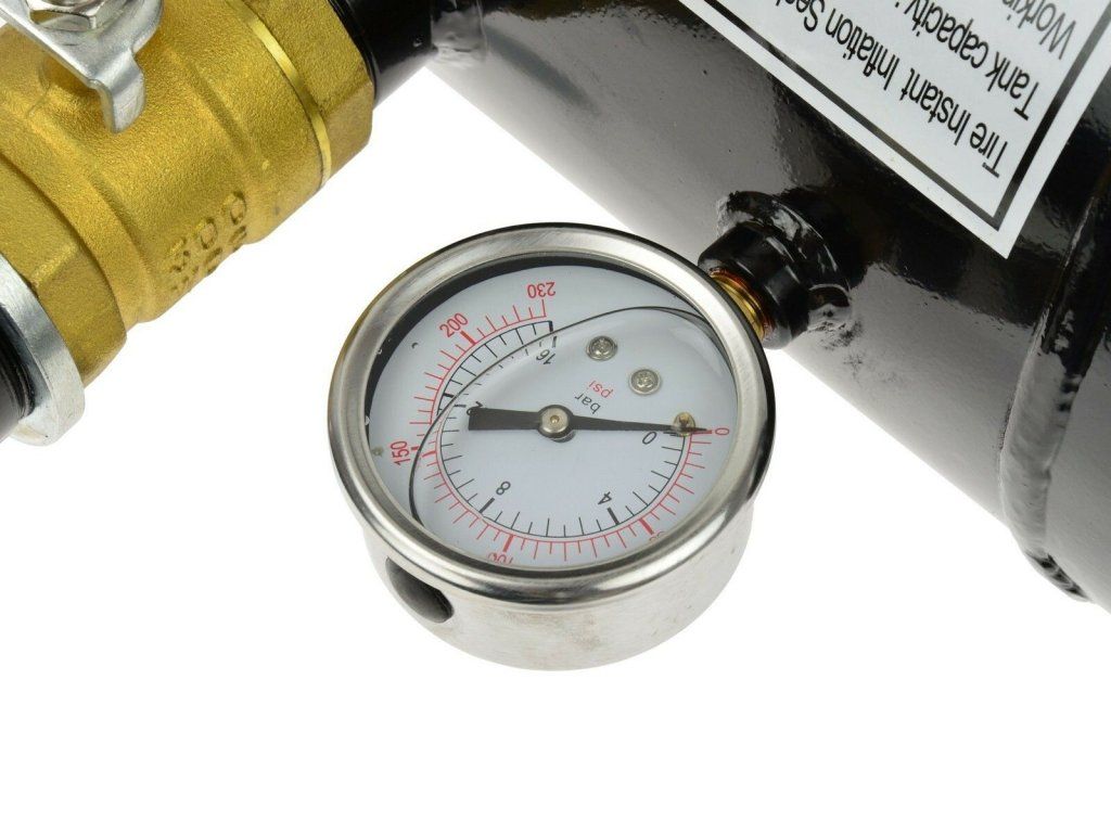 Zařízení určené k plnění kol osobních automobilů, dodávek a nákladních automobilů. Tlaková nádrž usnadňuje instalaci bezdušových pneumatik, zvláště doporučených pro tvrdé, nízkoprofilové pneumatiky a pneumatiky typu Run Flat. Zařízení uvolní nahromaděný tlak, čímž utěsní pneumatiku na ráfku.Technická specifikace: