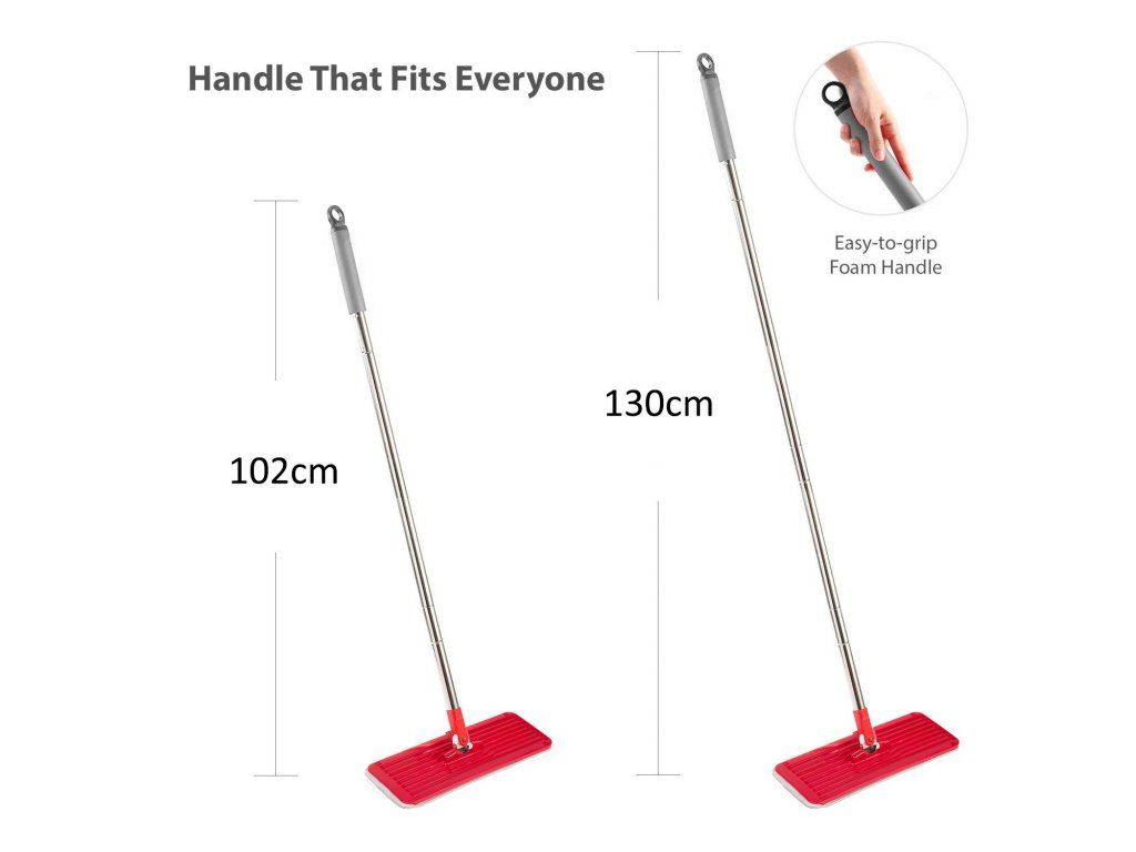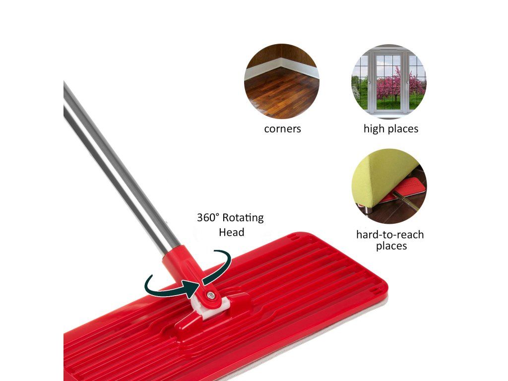 Plochá špička mopu vám umožní dostať sa aj do najťažšie prístupných kútov. Nastaviteľná hlavica uľahčuje čistenie pod nábytkom, pohovkami a kreslami.