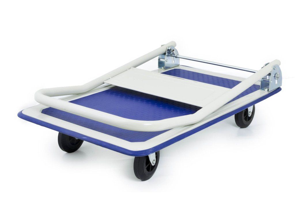 Plošinový vozík G21 150 je skladový vozík so sklopným držadlom, ktorý vám umožní prevážať aj rozmernejší náklad. Má široké využitie v skladoch, hoteloch a ďalších prevádzkach.Tento manipulačný plošinový vozík je opatrený nešpiniacimi kolieskami, teda sa nebudete musieť báť, že vám kolieska vozíka zanechajú na podlahe nepekné čierne škvrny.