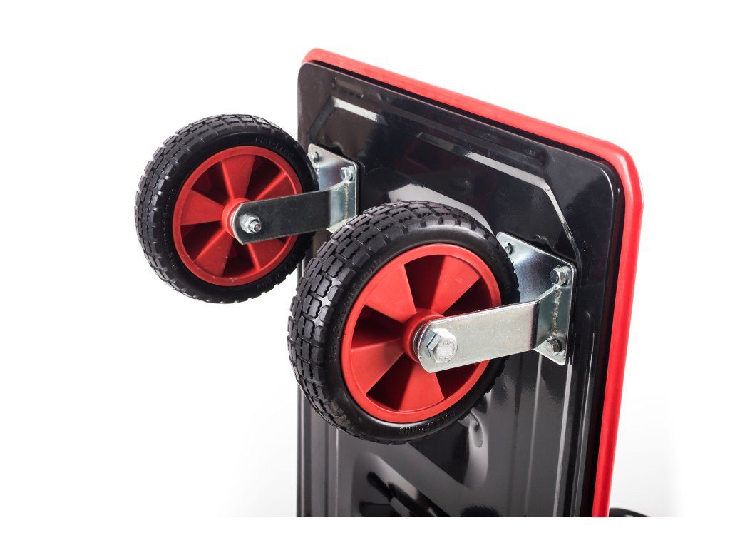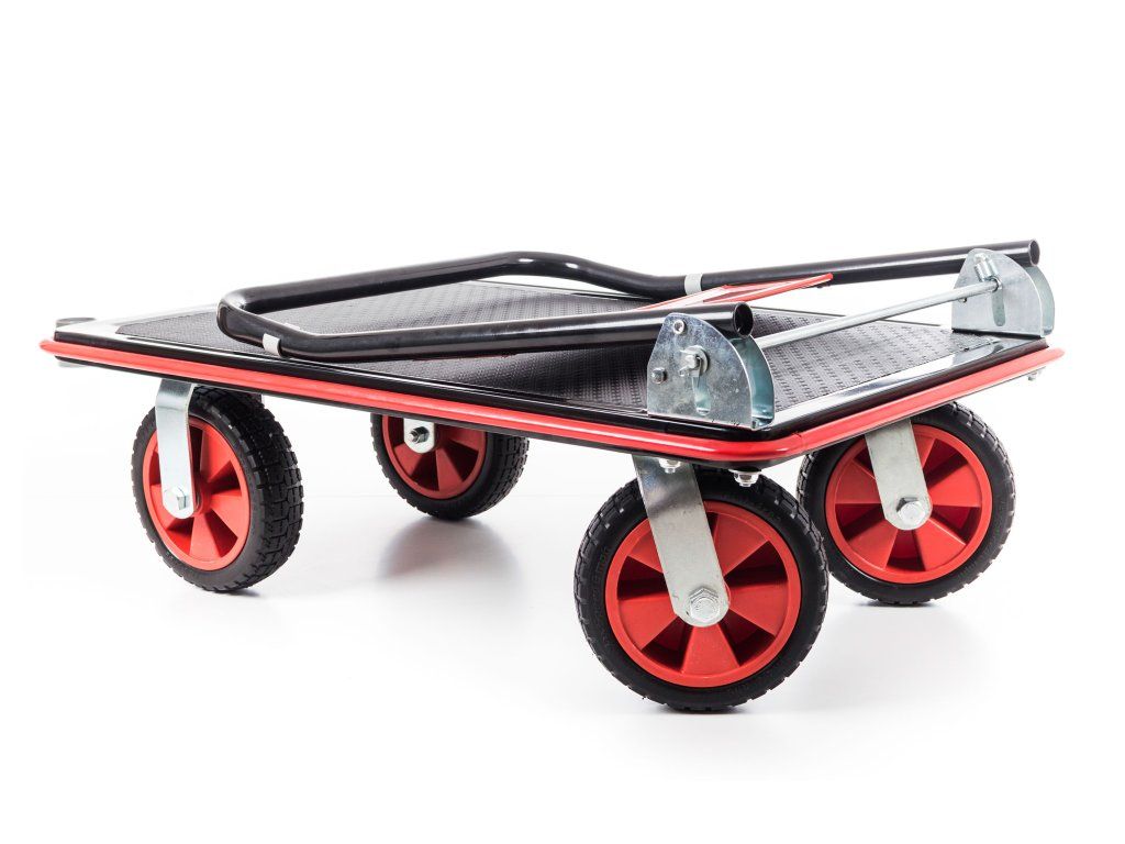 Sklápacia ergonomická rukoväť pre pohodlné držanie aj manipuláciu s vozíkom je veľmi praktická. Po použití rukoväť ľahko zložíte, takže vozík pri uskladnení pred ďalším použitím nezaberie zbytočne viac miesta, než je nutné.