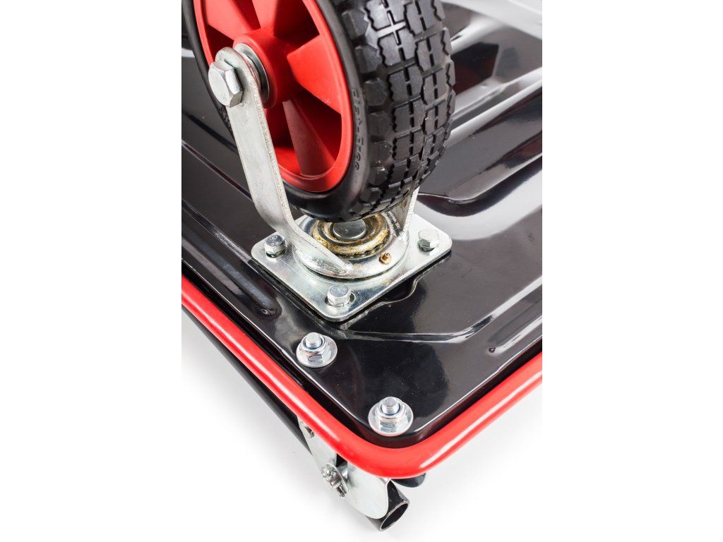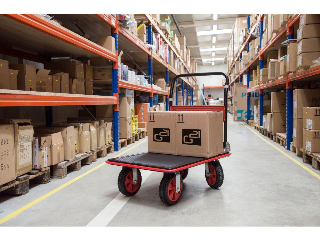Manipulačný plošinový vozík G21 má 4 pevné kolieska z odolnej tvrdenej gumy, ktorá nezanecháva čierne stopy a nenaruší čistý povrch podlahy v sklade, na predajni ani v domácnosti. Je preto vítaným pomocníkom aj pri sťahovaní.
