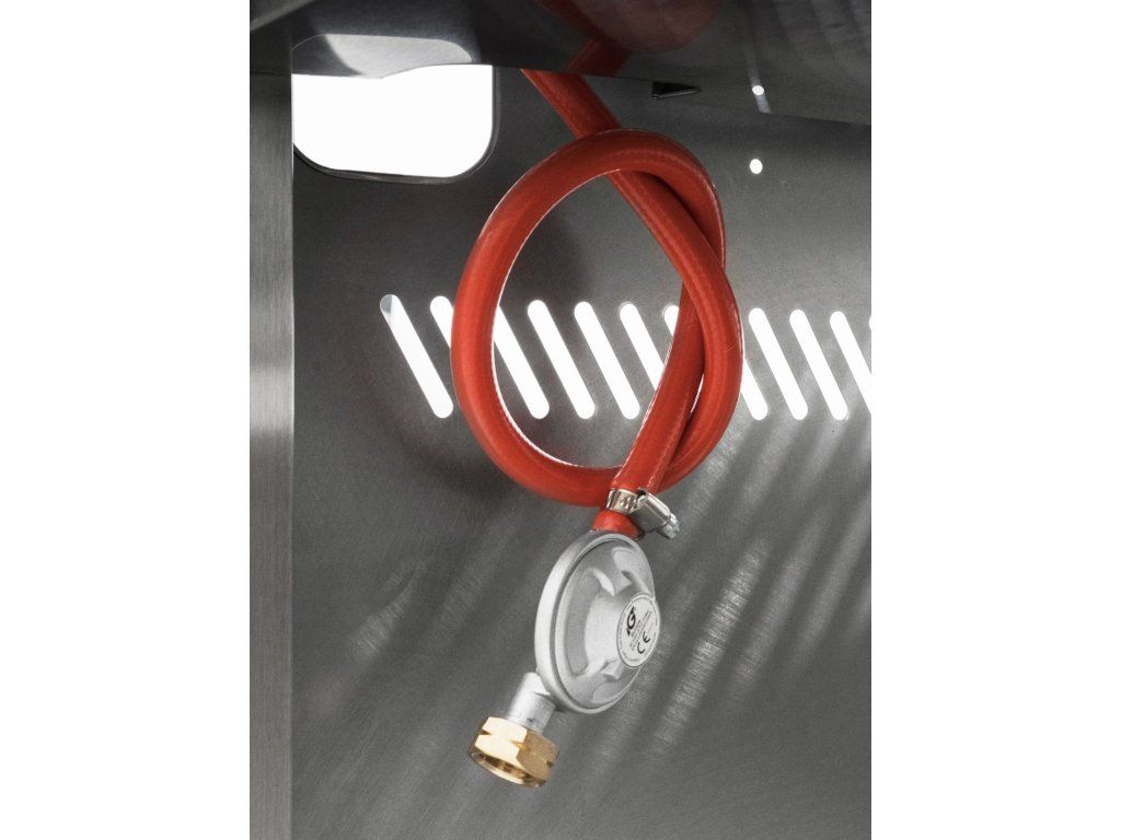 Pojazdný plynový gril G21 Florida BBQ so vstavaným teplomerom vo veku, zo všetkých strán uzavretou skrinkou s dvierkami na grilovacie potreby a veľkou pracovnou/odkladacou plochou je dokonalým grilom pre každú záhradnú grilovačku. Moderný atraktívny dizajn a kvalitný materiál mu zaručujú veľkú obľubu medzi jeho používateľmi.