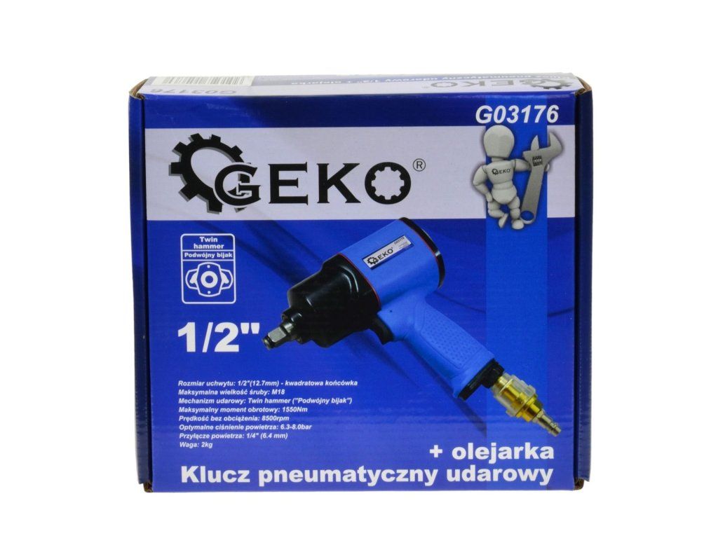 Pneumatický rázový utahovák 1/2", 1550 Nm, přimazávač oleje, Heavy Duty GEKO