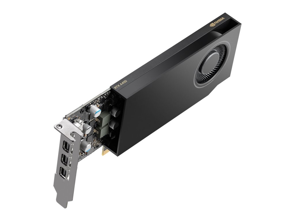 PNY NVIDIA RTX A400 vysoký výkon v malém provedení * NVIDIA Ampere Architecture Grafický čip: NVIDIA® RTX™ A400 CUDA cores: 748 Tensor Cores: 24 RT cores: 6 Šířka pásma paměti: 96GB/s Rozhraní: PCIe Gen 4 x8 Paměťová sběrnice: 64bit Maximální spotřeba: 50W Velikost paměti: 4GB GDDR6 OpenGL®: 4.6 DirectX: 12.0 Maximální počet displejů: * 4x 4096x2160 @120Hz * 4x 5120x2880 @60Hz Porty: 4x miniDP 1.4a Chlazení: 1x ventilátor NVENC/NVDEC: 1x/1x (+AV1 decode)Dodatočné parametre
