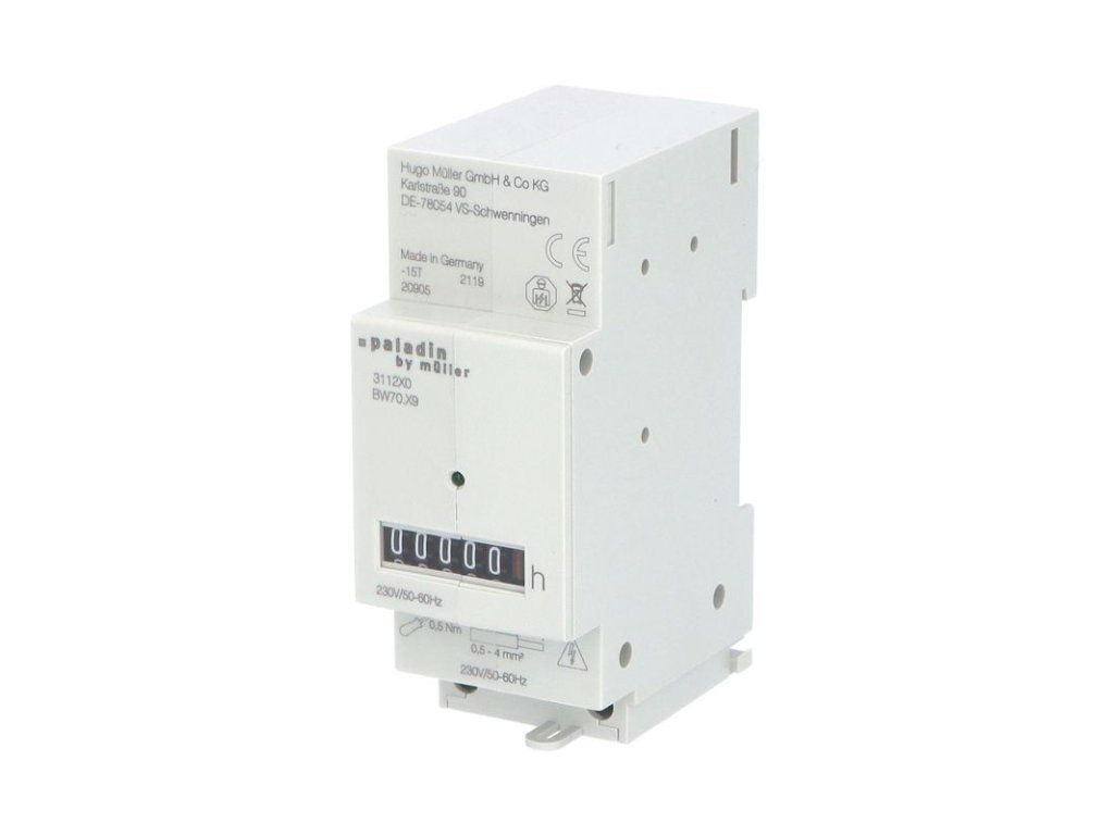Počítadlo provoz. hodin PALADIN 311270 (BW 70.29), 230V, 50Hz, 2mod., šedé, na DIN lištu