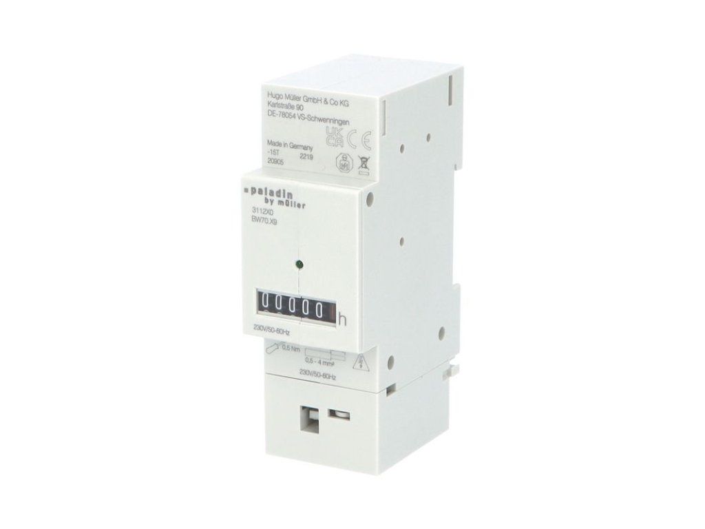 Počítadlo provoz. hodin PALADIN 311280 (BW 70.89), 230V, 50Hz, 2mod., šedé, na DIN lištu