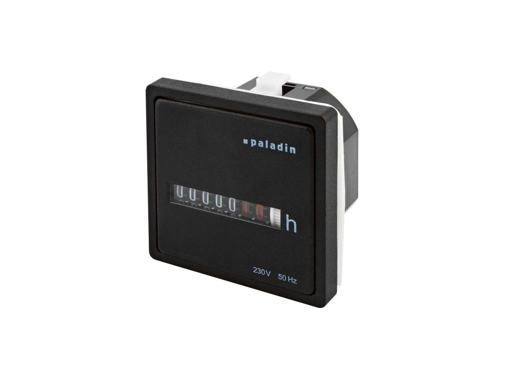 Počítadlo provozních hodin PALADIN BW 40.28 - napětí 230V (50Hz), velikost číslic 4,4mm, kapacita hodin 99999, montáž na panel, s rámečkem 55x55mm, krytí IP50, barva černá. Neodmyslitelným pomocníkem k hlídání pravidelných revizí a kontrol zejména průmyslových zařízení jsou počítadla provozních hodin PALADIN a ORBIS. Bezpečně načítají čas provozu zařízení a tím zajišťují delší životnost všech mechanických prvků. Instalují se přímo do panelu nebo na nosnou lištu 35 mm. Počítadla nelze vynulovat. Standardně jsou pro napětí: 230 V AC, 24 V AC a 12-48 V DC. Na vyžádání jsou dostupné i atypické varianty.Dodatočné parametre