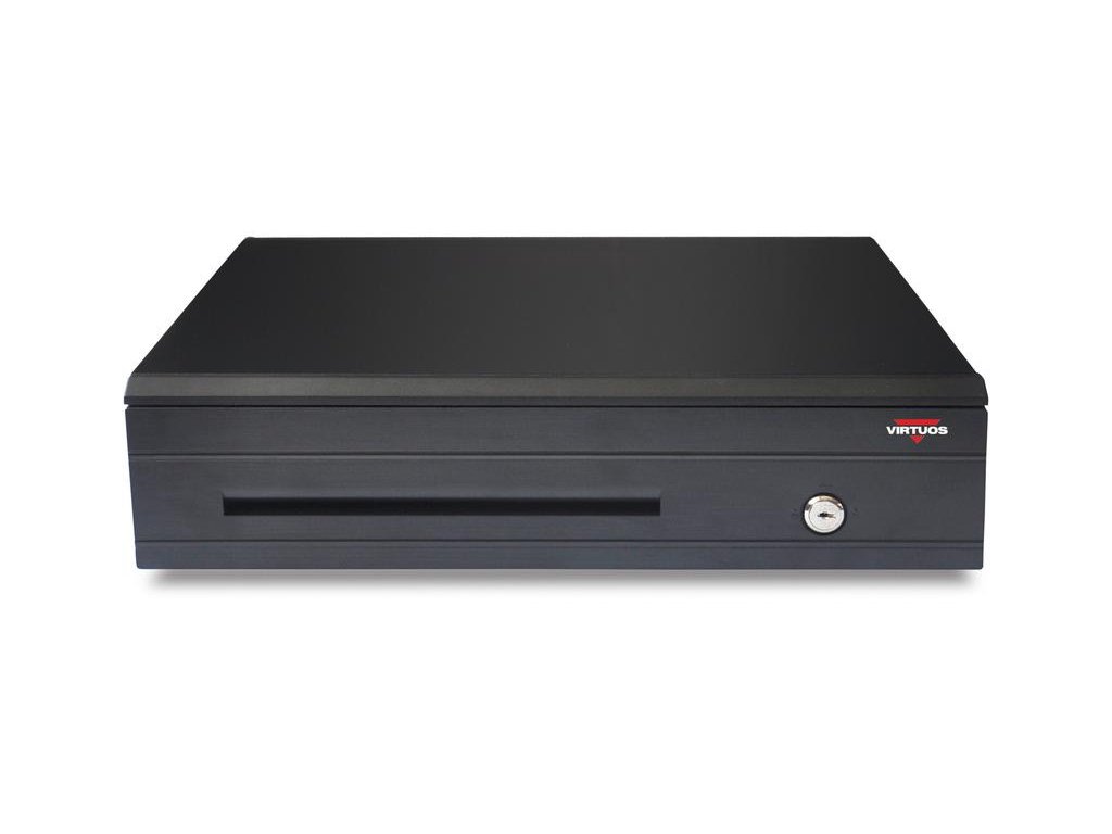 Vlajková loď pokladních zásuvek Virtuos® Tato pokladní zásuvka Virtuos C425 je nepostradatelným vybavením každého obchodu. Všichni prodejci tak ocení praktičnost, ale i pevnou konstrukci této pokladny. Základní parametry *Dostatečně široký pořadač robustní plastové konstrukce pro pohodlné umístění 5 druhů bankovek vedle sebe *Vyjímatelný mincovník a pořadač bankovek s libovolně nastavitelnými přihrádkami *Přidržování bankovek výměnnými přítlačnými kovovými držáky s pružinou *Lepší manipulace s bankovkami - houbička pro navlhčení prstů v přední části zásuvky *Pořadač bankovek je možné opatřit uzamykatelným krytem *Otvírání zásuvky: mechanicky klíčkem nebo elektronicky *Elektronická kontrola otevření zásuvky pomocí tzv. microswitche *Možnost vkládání bankovek a šeků přední štěrbinou bez otevření zásuvky *Mechanicky odolná konstrukce *Připojovací konektor RJ50 10P10C umožňující připojení ke všem systémům na 9-24V *Připojovací konektor umístěn ve dně zásuvky - není omezen prostor za zásuvkou *Součástí kabel RJ12 24V pro připojení k pokladní tiskárně (EKA0518) Specifikace *Nastavitelné přihrádky: 5× pro bankovky - vyjímatelný pořadač, 8× pro mince - vyjímatelný mincovník *Elektronika ovládání: Solenoid 9-24V/max. 1A *Rozměry zásuvky: 425 (Š) × 100* (V) × 455 (H) mm (*měřeno bez gumových nožiček vysokých 10 mm) *Hmotnost: 8,6 kg (bez obalu), 9,4 kg (s obalem) *Konektor: RJ-50 10P10C pro připojení externího kabelu *Rozhraní: Způsob připojení k systému je dán výběrem externího kabelu. Součástí dodávky je kabel RJ12 24V pro připojení k pokladní tiskárně (EKA0518).Dodatočné parametre