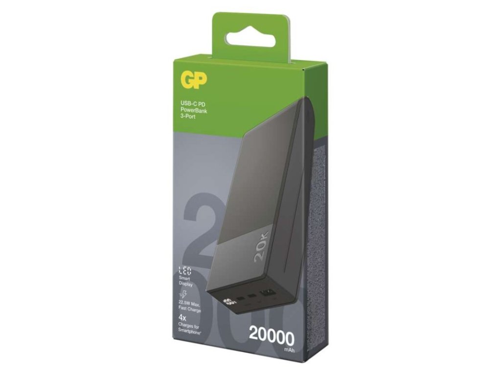 Power bank GP M2+ Series, 20 000 mAh, 22,5 W, šedá