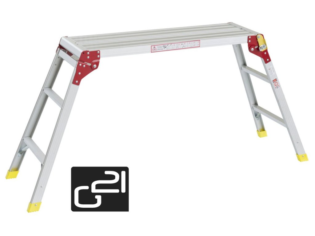Skládací pracovní plošina G21 Work Station vyrobená z hliníkových profilů zaručuje nízkou hmotnost, stabilitu a vysokou pevnost.