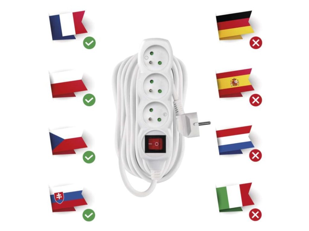Komentár k produktu Predlžovací kábel 10 m / 3 zásuvky / s vypínačom / biely / PVC / 1,5 mm2