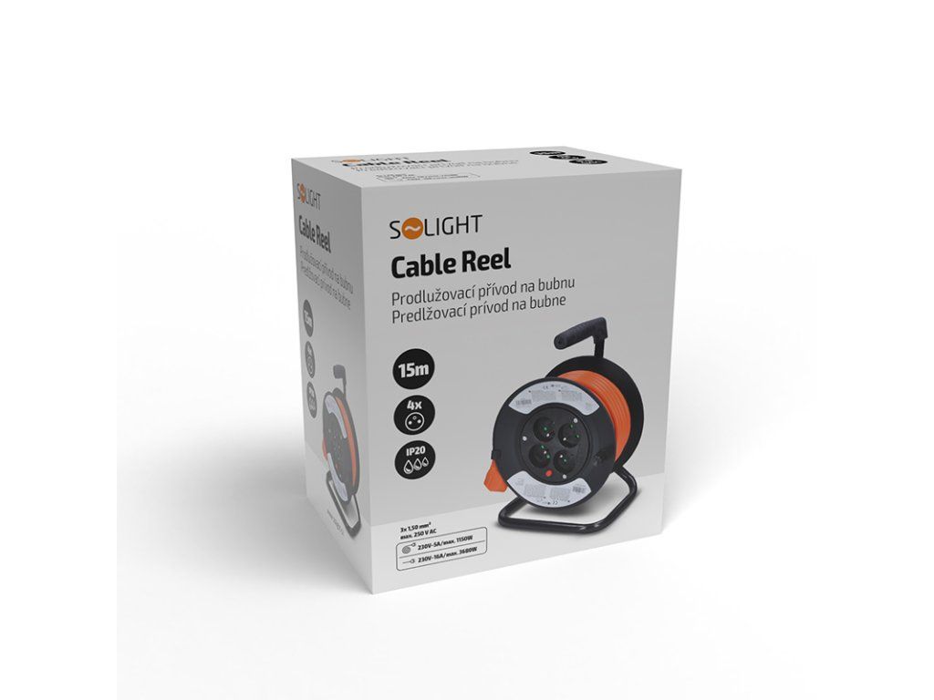 Predlžovací kábel na bubne 15m, 3x1,5mm, PVC, 4 zásuvky - Solight PB23O