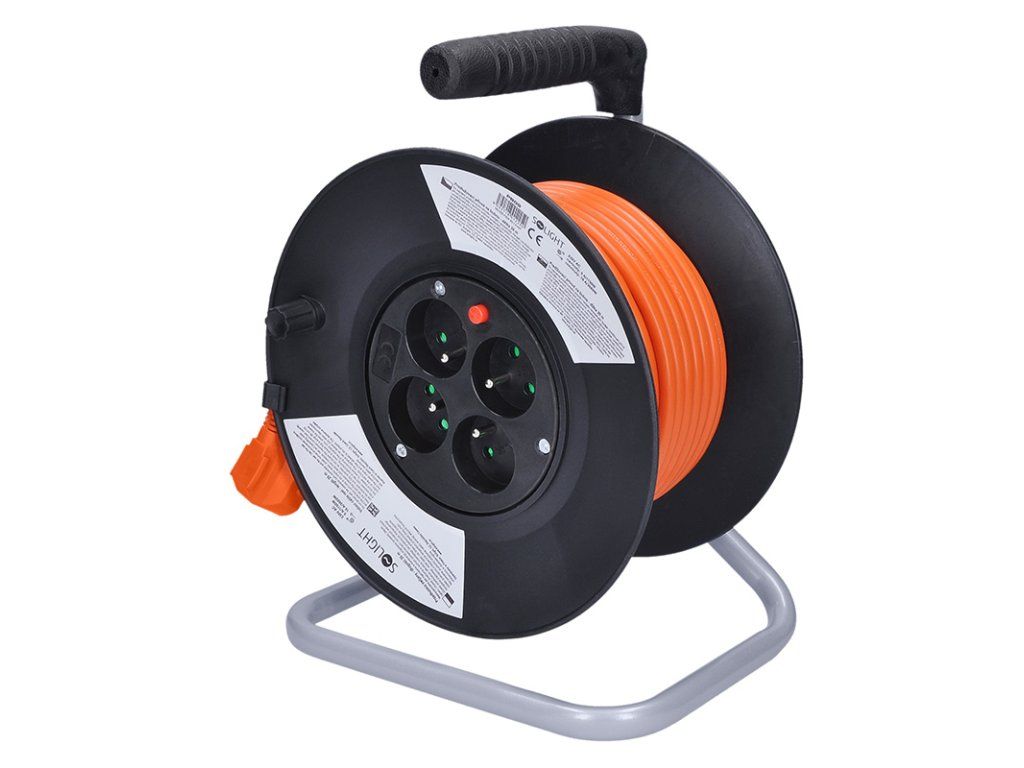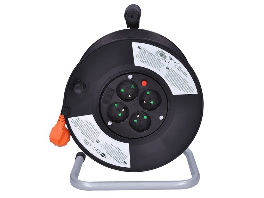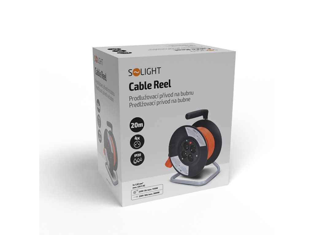 Predlžovací kábel na bubne 20m, 3x1,5mm, PVC, 4 zásuvky - Solight PB09