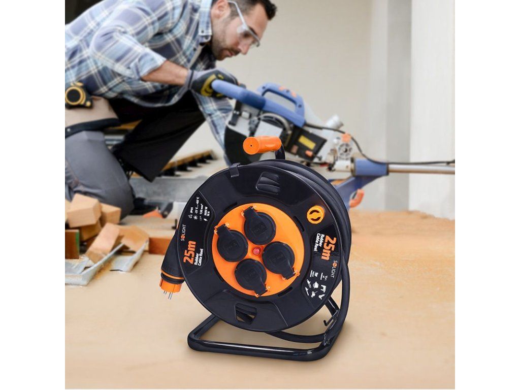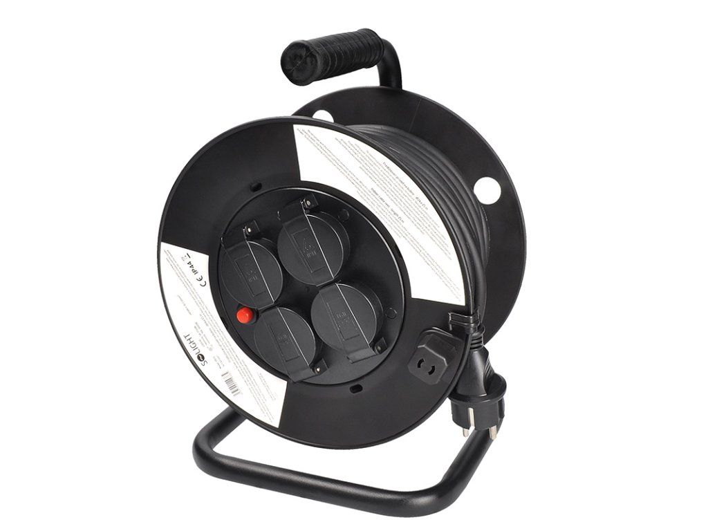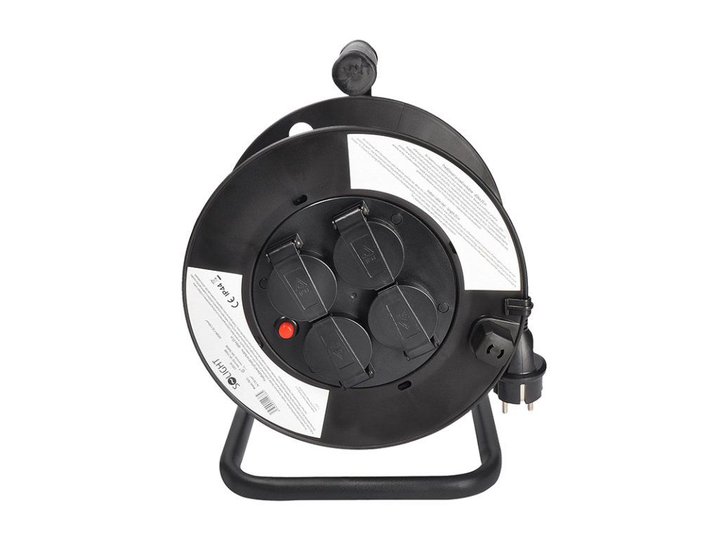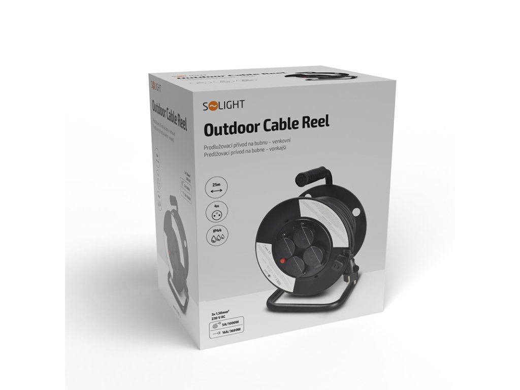 Predlžovací kábel na bubne 25m, 3x1,5mm, guma, 4 zásuvky, IP44 - Solight PB33