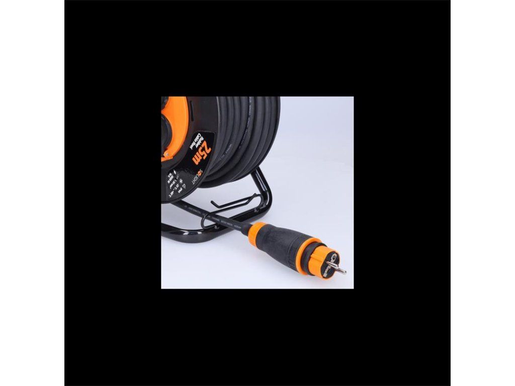 Vysokokvalitný predlžovací kábel na bubne. Je ideálny na predĺženie napájania 230 VAC. Pohodlná manipulácia vďaka bubnu.